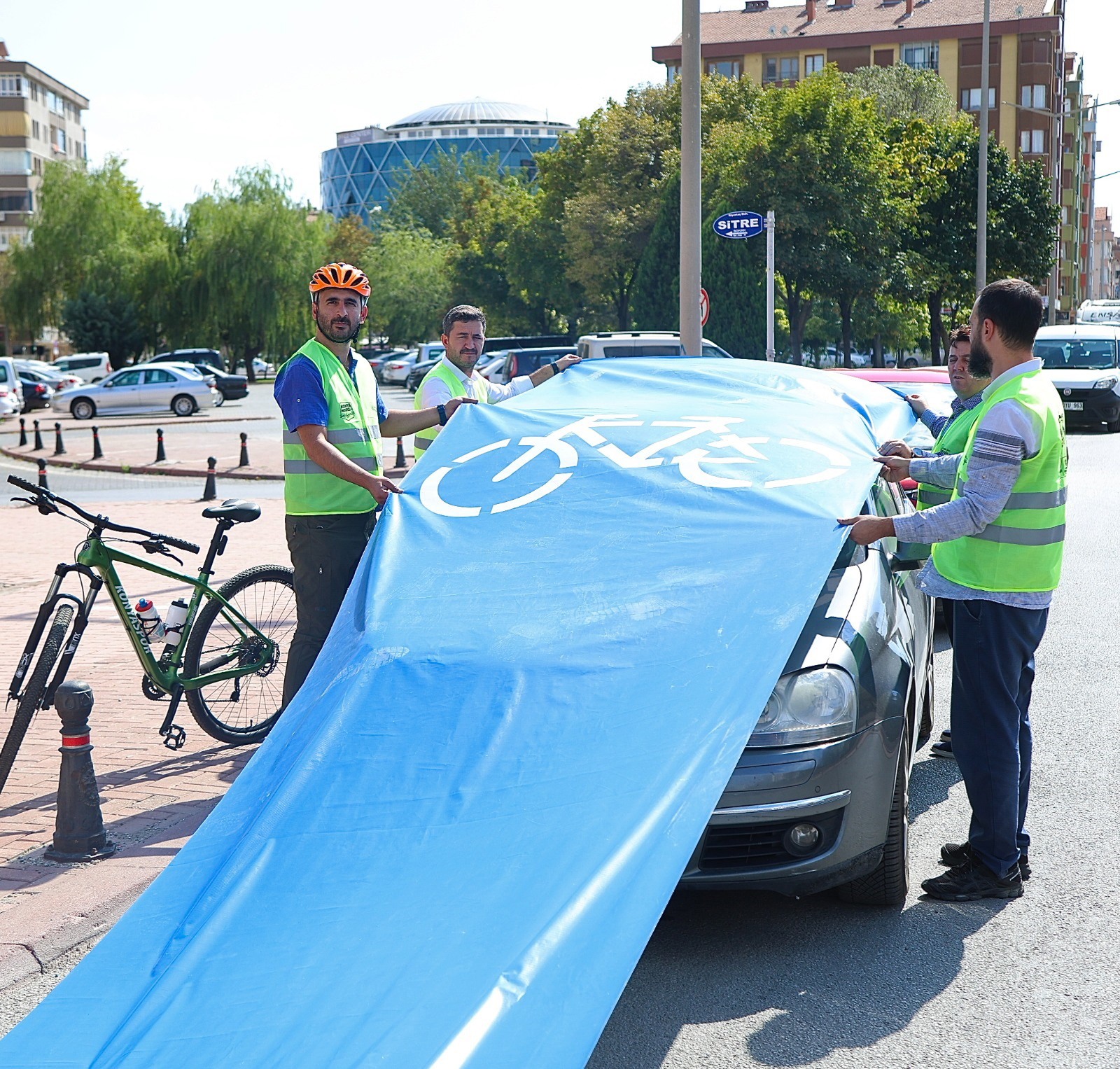 Konyadaki 635 kilometre bisiklet yolu, ülkenin en uzun bisiklet yolu ünvanını taşıyor. Ancak sürücüler, zaman zaman araçlarını bisiklet yoluna park edince, bisikletliler güçlük çekiyor. Bisikletseverler Avrupa Hareketlilik Haftası kapsamında şehir merkezinde bisiklet yoluna park eden araçların üzerine yolu simgeleyen mavi brandaları örterek, duruma tepki gösterip, farkındalık yaratmaya çalıştı.