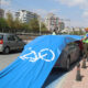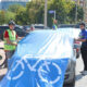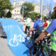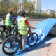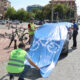 Bisiklet yolunu kapatan araçların üzerine branda çekip tepki gösterdiler