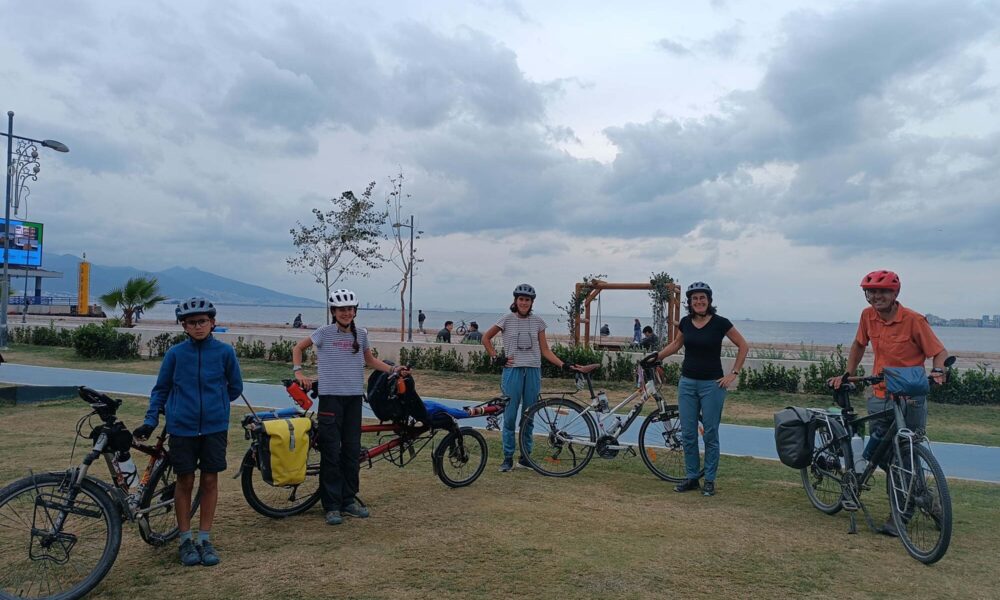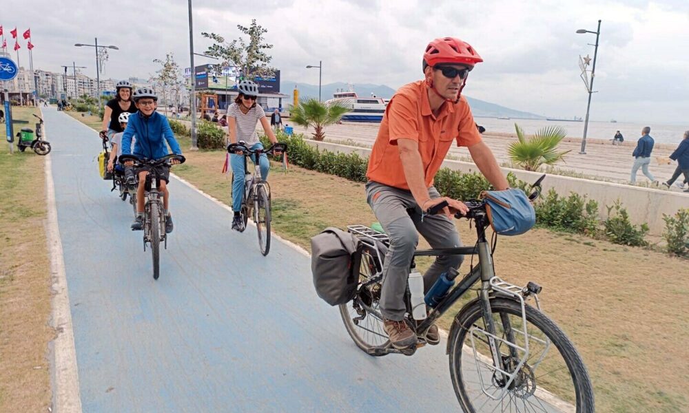 Bisikletle dünya turuna çıkan Fransız aile, İzmir’e ulaştı