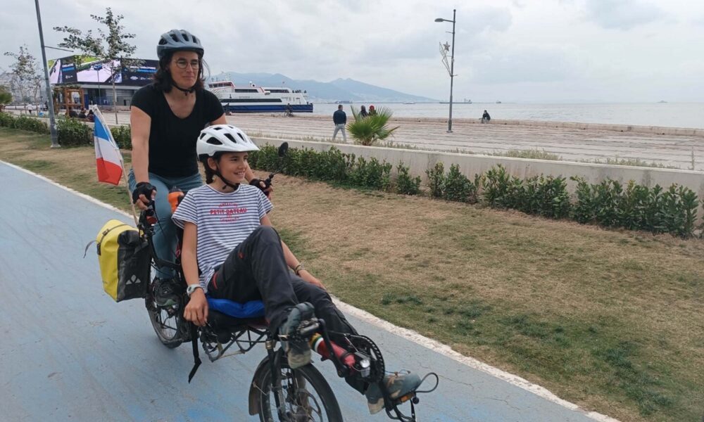 Fransa’da yaşayan makine mühendisi François Ravanas, ilkokul öğretmeni eşi Maud Ravanas (46) ve çocukları Coiombine (14), Brune (12) ile Eloi Ravanas (10), bisikletle dünya turuna çıktı. Gülümse ve bisiklet sür sloganıyla 3 ay önce yola çıkan aile, bugüne kadar 11 ülkede 24 şehir gezdi ve 3 bin 700 kilometreden fazla pedal çevirdi. Konaklamalarını kamp kurarak sürdüren aile, Türkiye rotasının son durağı olarak İzmir’e geldi. Farklı kültürlerle tanışmayı, çocuklarına yeni yaşam deneyimleri sunmayı ve bisiklet kullanımını teşvik ederek ekolojik etkiyi azaltmayı hedeflediklerini belirten Ravanas ailesi, 10 ay sürecek tur kapsamında Tayland’a uçakla geçecek. Ardından Laos, Vietnam, Çin ve Japonya’da pedal çevirecek aile, dünya turunu Fransa’da tamamlamayı planlıyor.