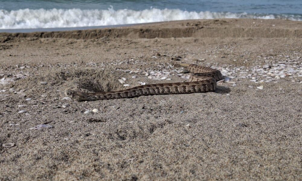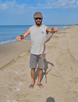 Karataş ilçesindeki Akyatan Lagününün sahil kısmında sabah saatlerinde yeşil deniz kaplumbağalarıyla ilgili arazi çalışması yapan Doğal Hayatı Koruma Vakfında (WWF Türkiye) görevli Yaban Hayatı Uzmanı, Biyolog Mehmet Tural, kıyıda bitkin haldeki bir yılanın anormal hareketler yaptığını gördü. Tural, yaklaştığında, 1 metre 20 santim boylarındaki yılanın Türkiye’nin en zehirli türlerinden koca engerek olduğunu anlayıp, yengeç yuvalarına girmeye çalıştığını fark etti. Kuyruğundan tuttuğu yılanı çubukla kaldıran Tural, yuttuğu tuzlu suyu çıkarmasını sağladı. Tural, bir süre sonra hareketlenen yılanı, doğal yaşam ortamına bıraktı.