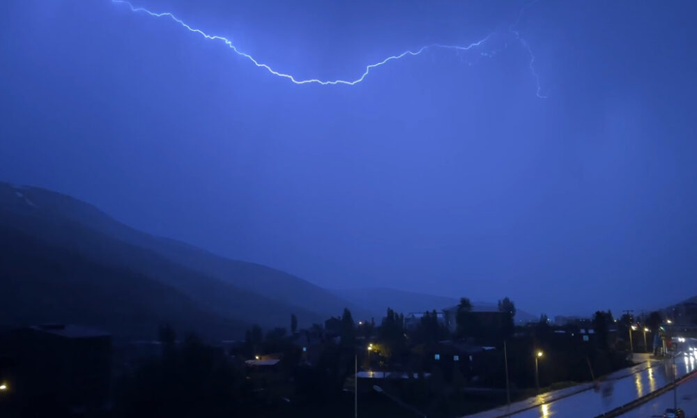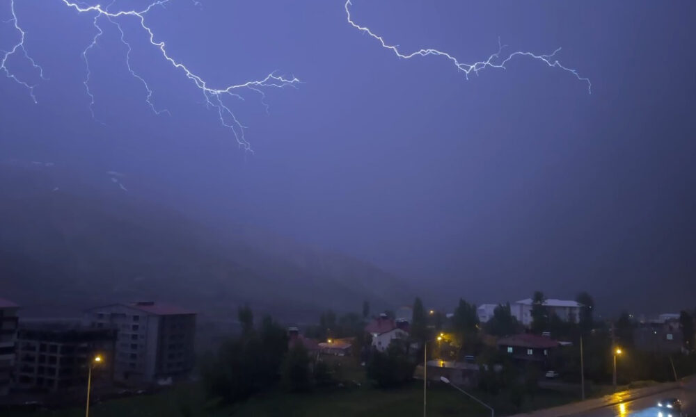 Bitlis’te Meteorolojinin yağış uyarılarının ardından etkili olan yağmur akşam saatlerinde etkisini arttırdı. Şiddetli yağmurla birlikte çakan şimşekler ise geceyi aydınlattı. Yaklaşık 1 saat boyunca aralıklarla çakan şimşekleri, Beş Minare Mahallesinde oturan Ahmet Araç isimli vatandaş kamerayla kaydetti.