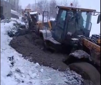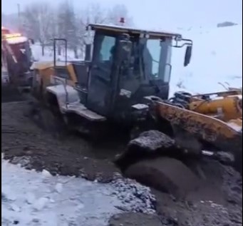 Ahlat ilçesine bağlı Nazik köyünün yolu yoğun kar yağışı nedeniyle ulaşıma kapandı. Köy yolunu açmak için bölgeye giden İl Özel İdaresi ekiplerine ait iş makinesi, yol güzergahında oluşan çamur nedeniyle saplandı. Durum üzerine iş makinesi operatörü yardım talebinde bulundu. İhbar üzerine bölgeye gelen başka bir ekip, yapılan çalışma sonucu çamura saplanan iş makinesini bulunduğu yerden çıkardı. Kurtarma çalışmasının ardından ekipler, köy yolunu yeniden ulaşıma açmak için karla mücadele çalışmalarına kaldıkları yerden devam etti.