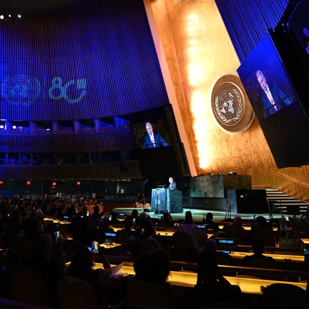 Guterres, BM ilkelerinin kuşatma altında olduğunu ve barışın temellerinin çöktüğünü aktararak, “Burası ideolojik bir tartışmanın zemini değil. Savaşın ne kadar barbar bir noktaya ilerlediğini görüyoruz. Buna izin vermememiz gerekiyor. Duruşumuz net olmalıdır. Uluslararası hukuka saygı duyacağız. Ortak bir duruş geliştirmeliyiz. Savaşa, şiddete karşı olmak ortak duruş olmalı. Barışın temelleri, cezasızlık ve eşitsizliğin ağırlığı altında çöküyor. Bizi biz yapan prensiplerin arkasında olmalıyız. Gazzede olanlara bakın. İdeallerimizi hayata geçirmeli ve tavizsiz bir şekilde uygulamalıyız” diye konuştu.
