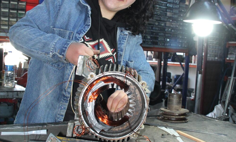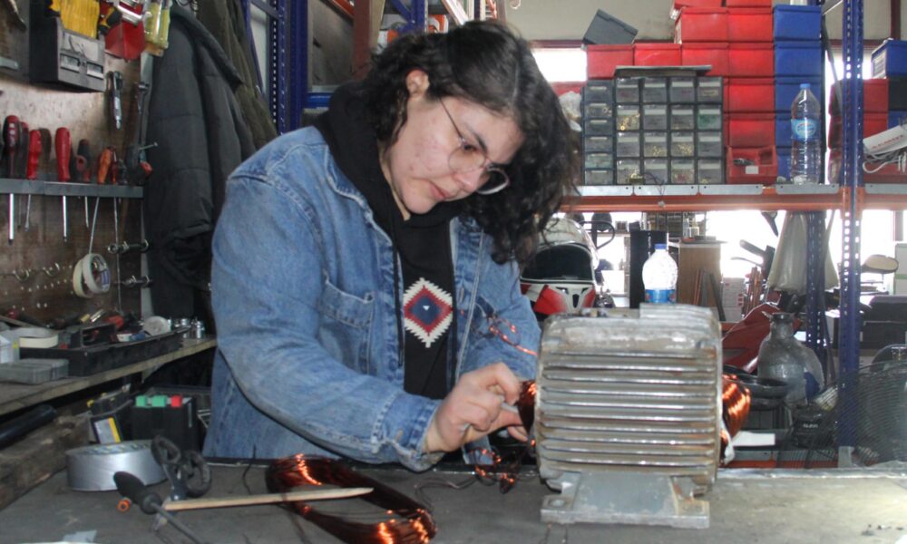 Bobinajcı İlknur usta, dede mesleğini yapıyor