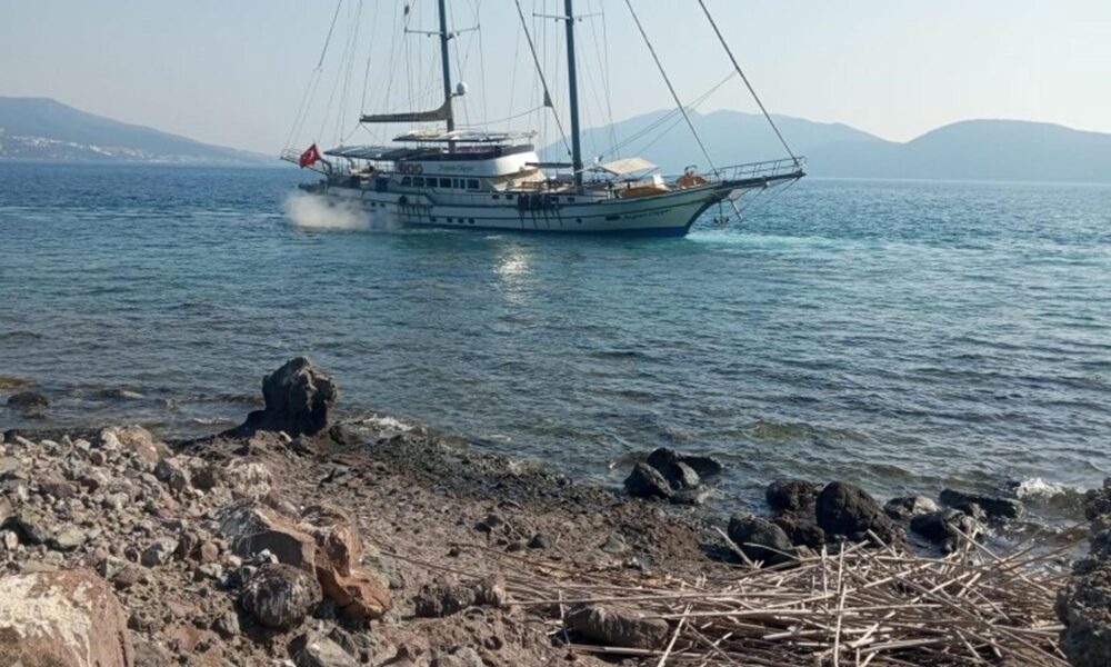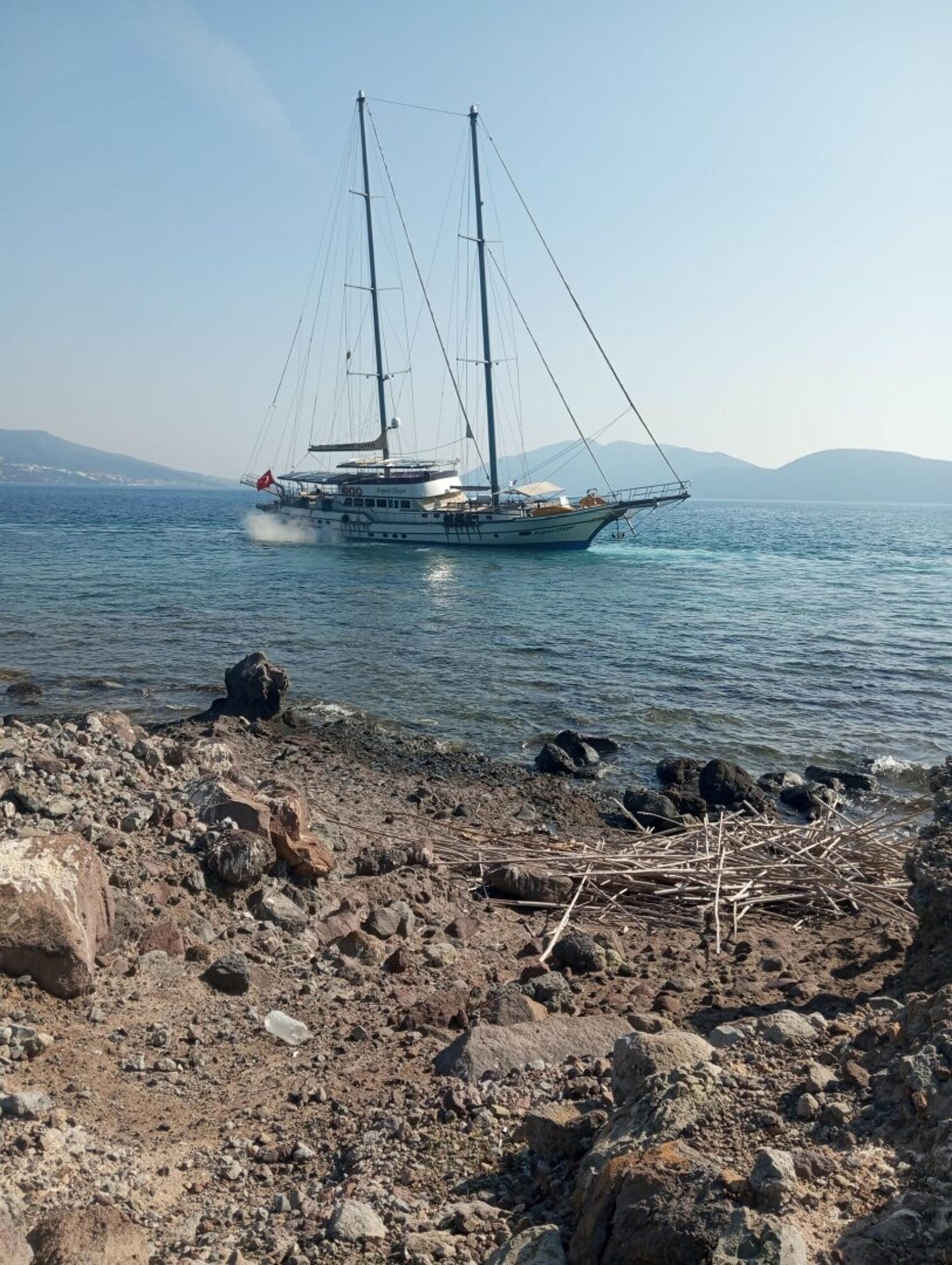 Bodrum’da 41 metre uzunluğundaki yelkenli karaya oturdu