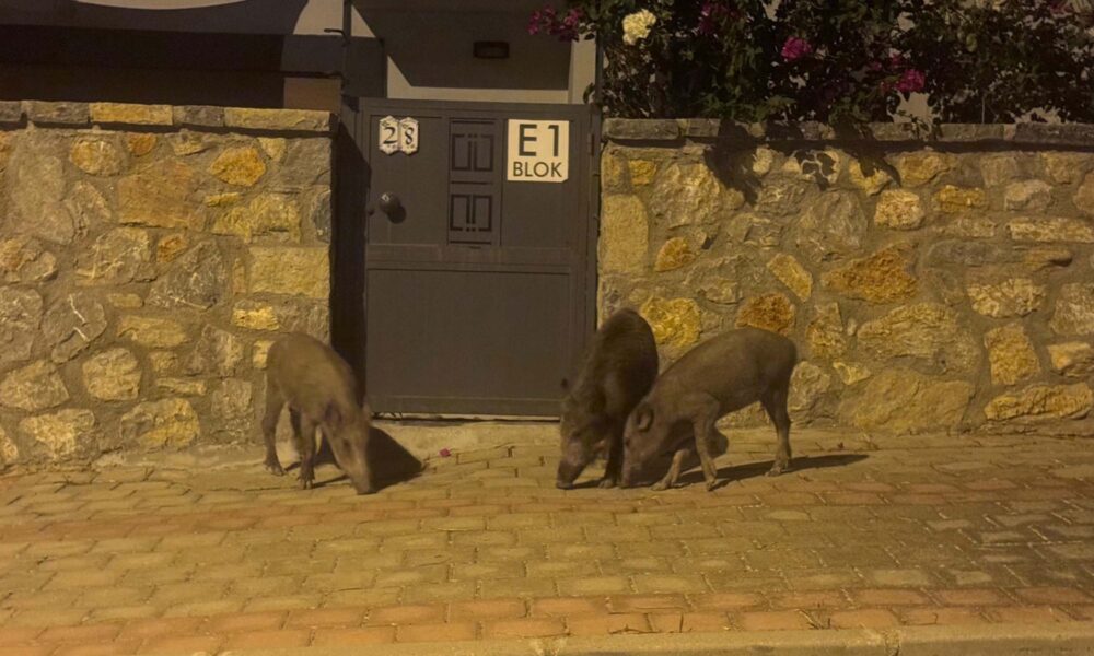 Bodrum’da aç kalan domuzlar ilçe merkezine indi