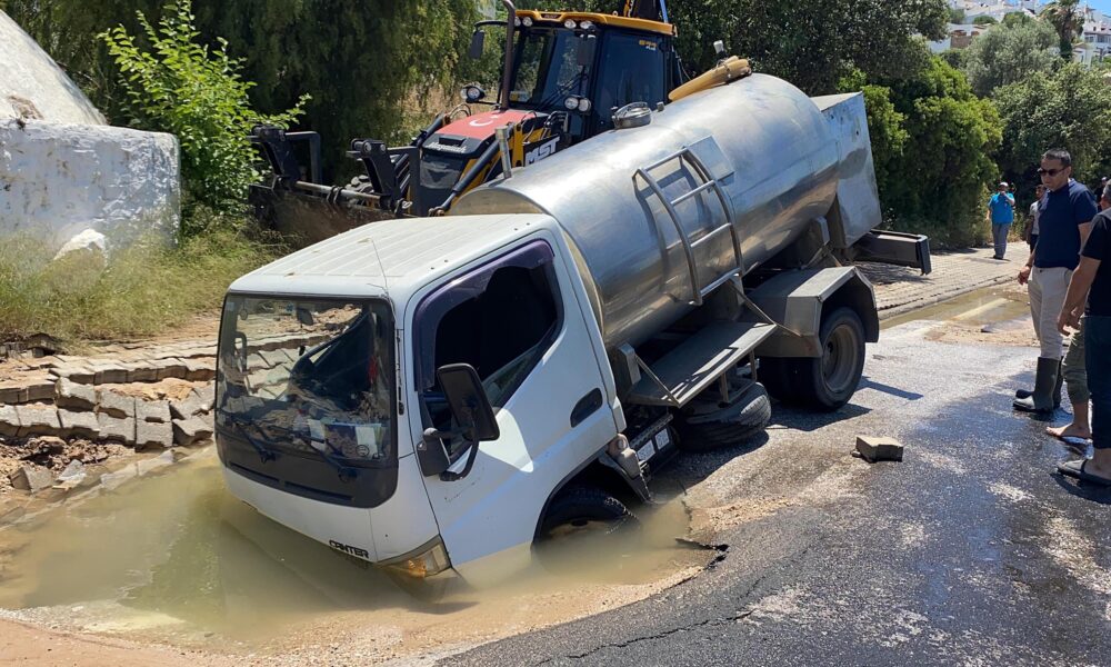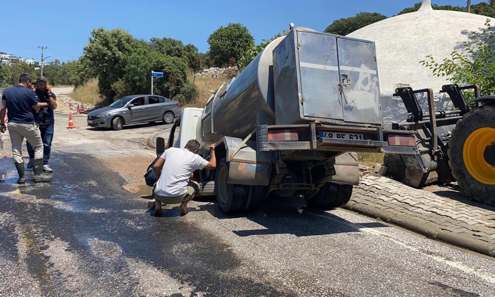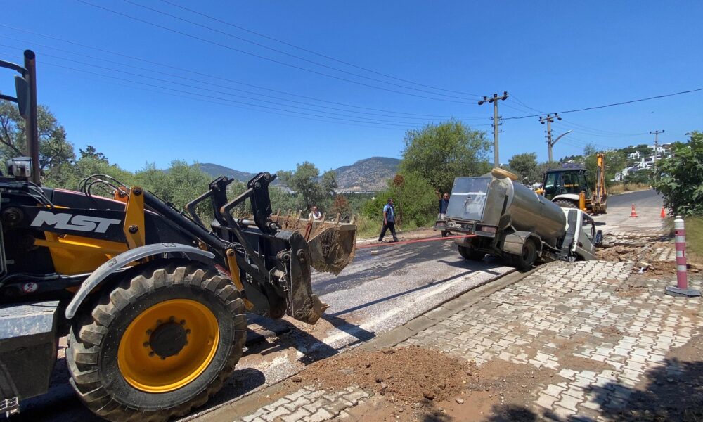 Bodrum’da ana isale hattı patladı, yoldan geçen tanker çukura düştü