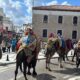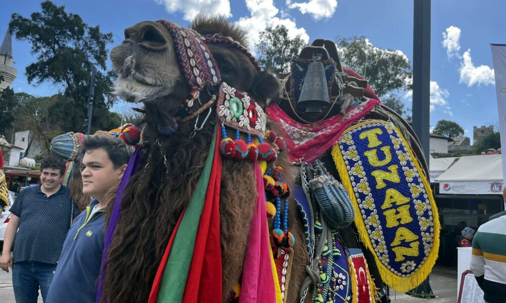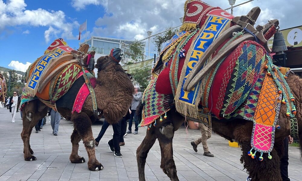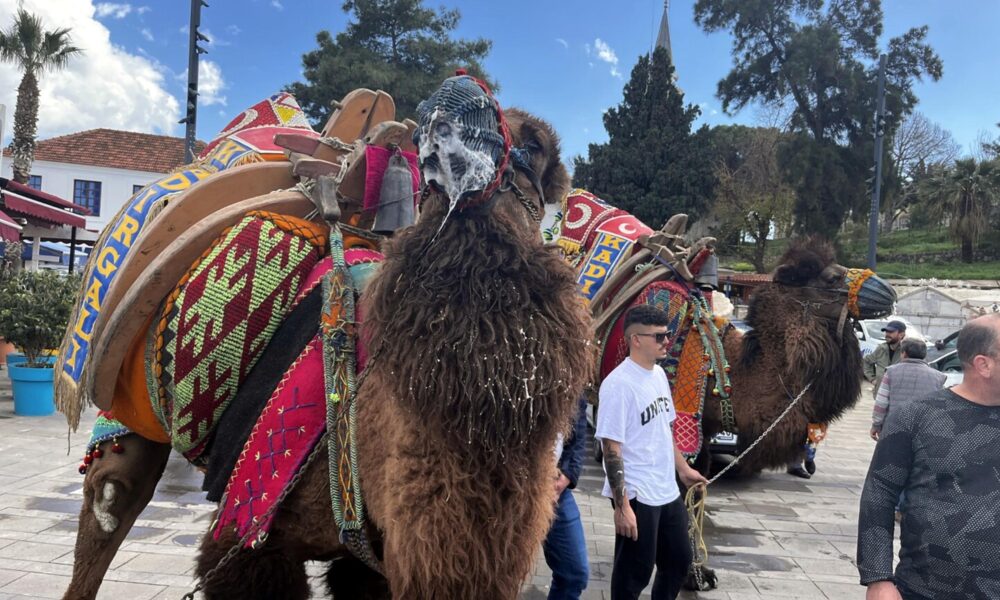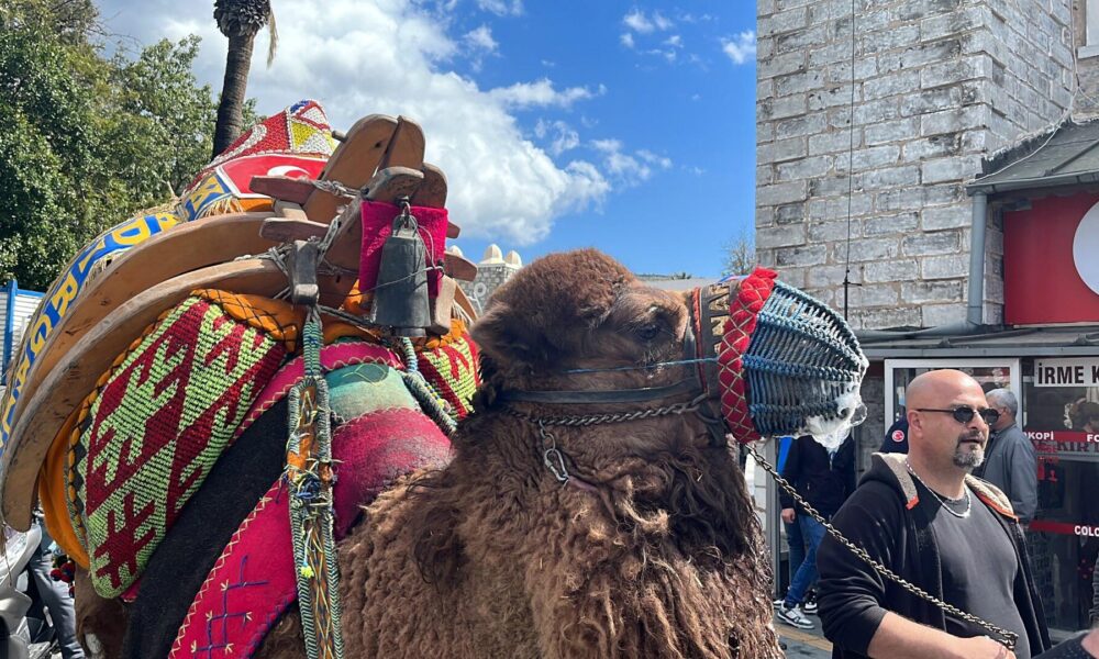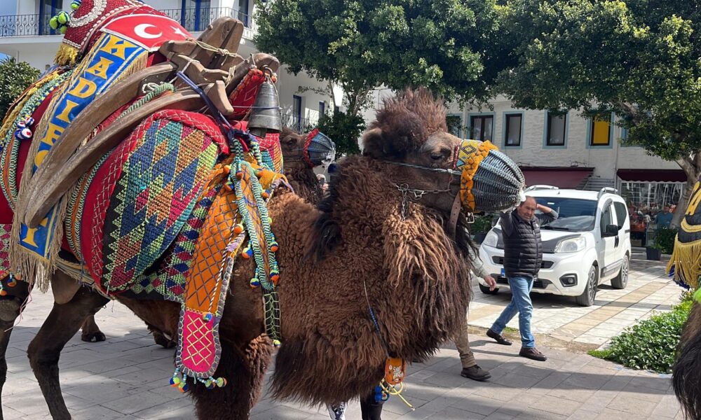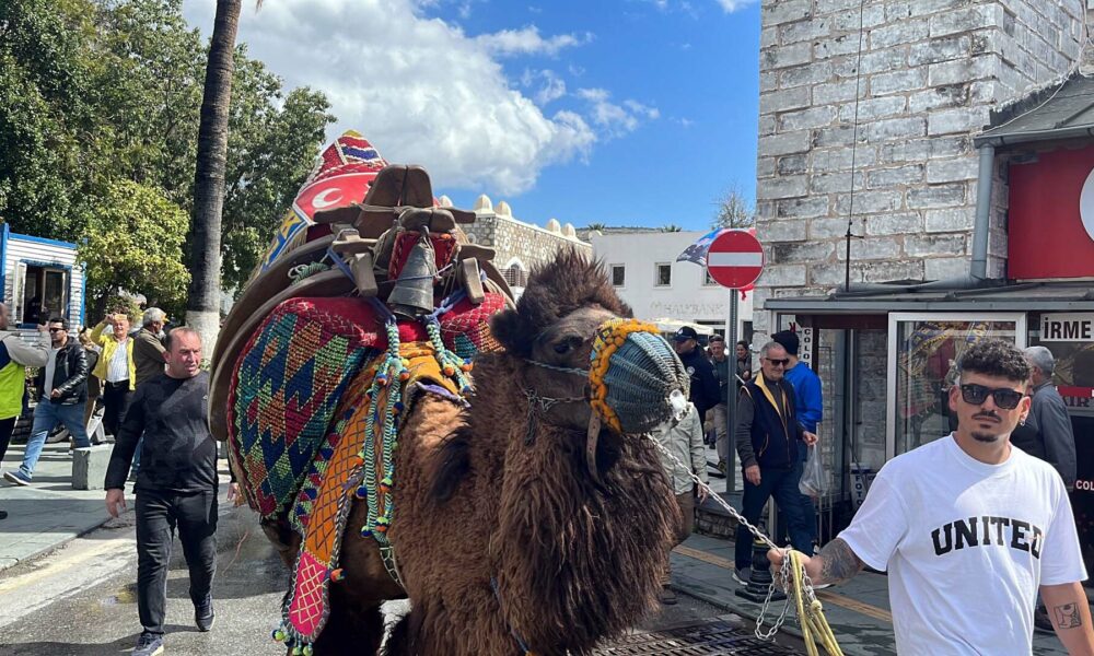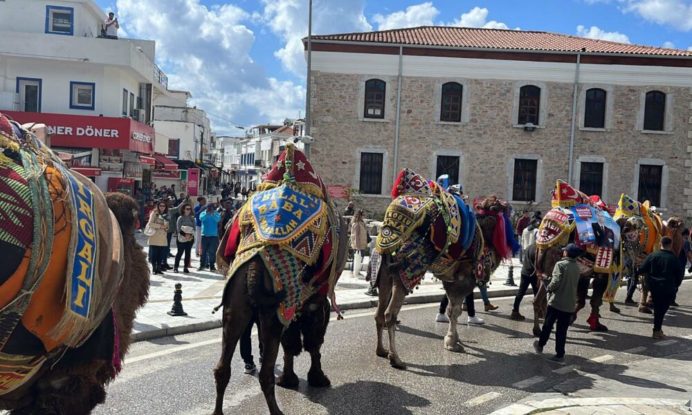 Bodrum’da develer meydana indi, turistler ilgi gösterdi