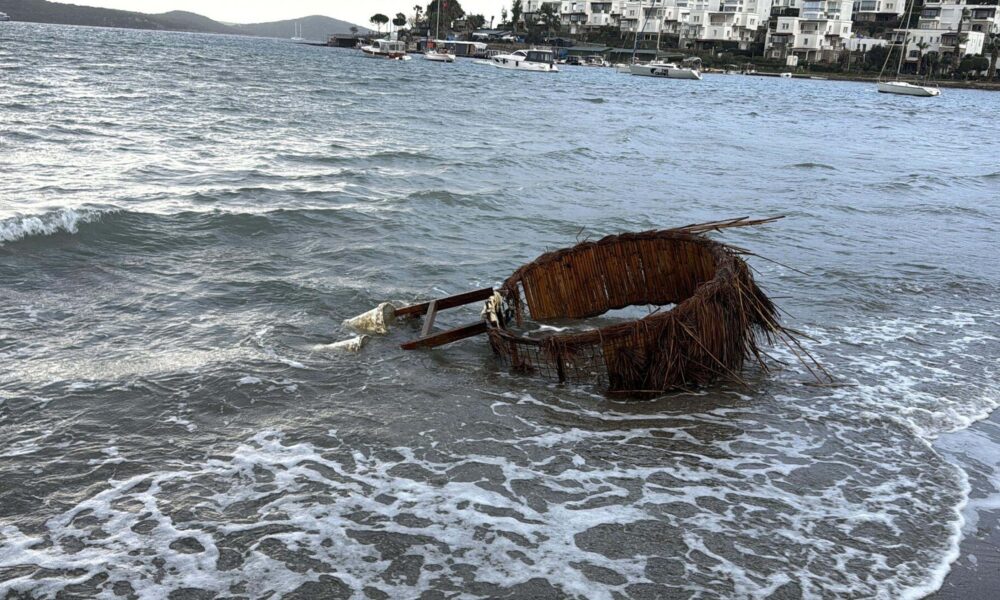 Meteoroloji 4’üncü Bölge Müdürlüğü, dün Bodrum-Kaş arasında denizlerde fırtına uyarısı yaptı. Dün öğle saatlerinden itibaren etkili olan fırtına ilçede bugün de etkisini sürdürdü. Fırtınanın saatteki hızı yer yer 90 kilometreye ulaştı. Fırtına nedeniyle Bitez, Yalıkavak, Mumcular gibi bölgelerde ağaçlar devrildi. Belediye ekipleri tarafından devrilen ağaçlar bulundukları yerden kaldırıldı. Bitez sahilinde balıkçı tekneleri su aldı. Bazı amatör denizciler tekneleri karaya çekerek tedbir aldı. Yeniköy Mahallesinde bir çatı izolasyon malzemesi uçtu.