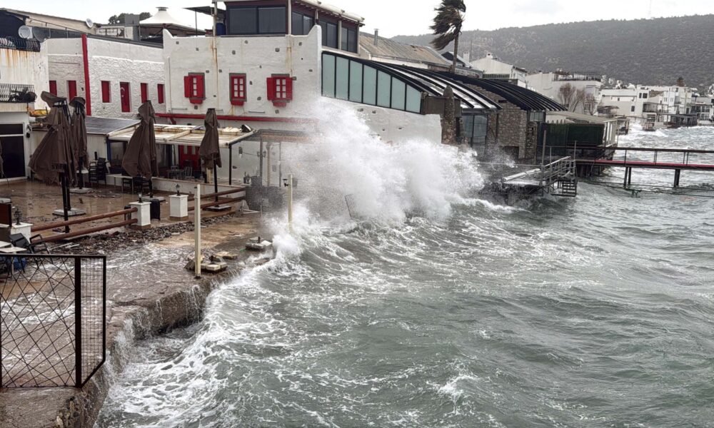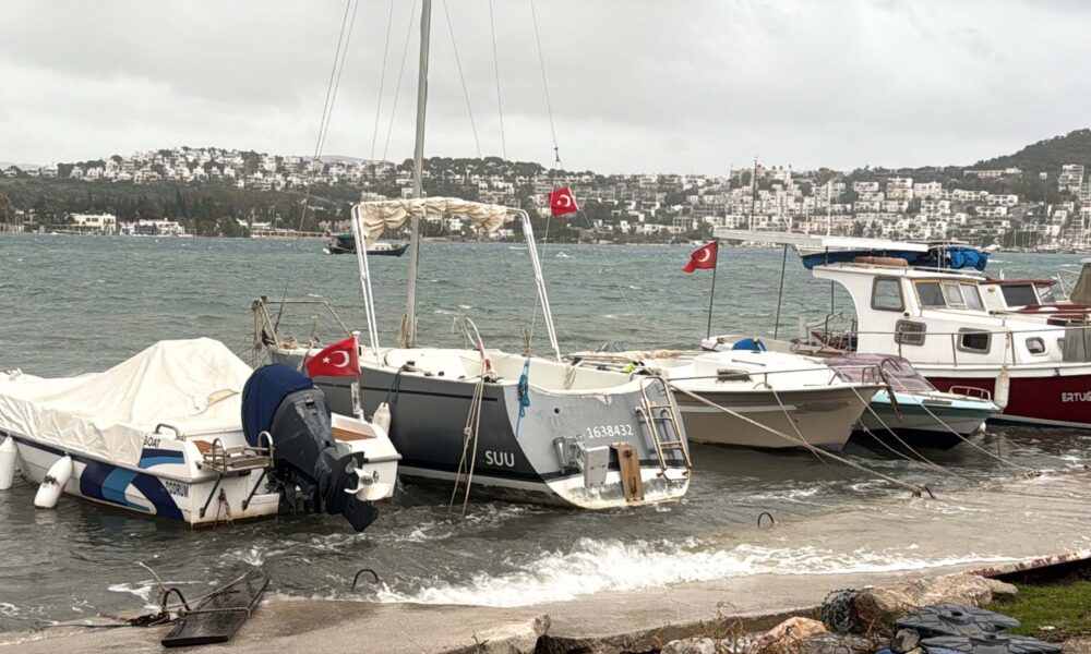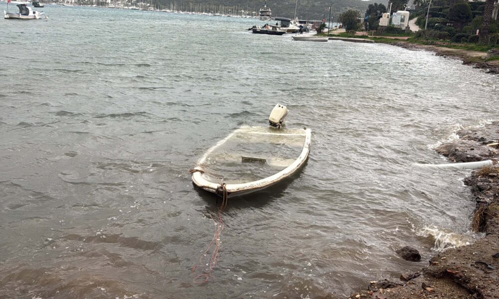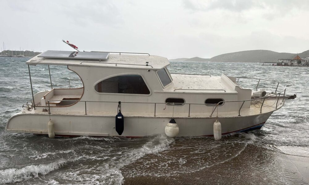 Bodrum’da fırtına; tekne karaya vurdu, feribot seferleri iptal edildi