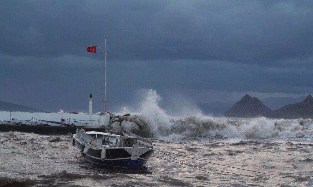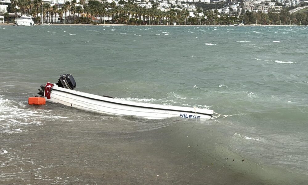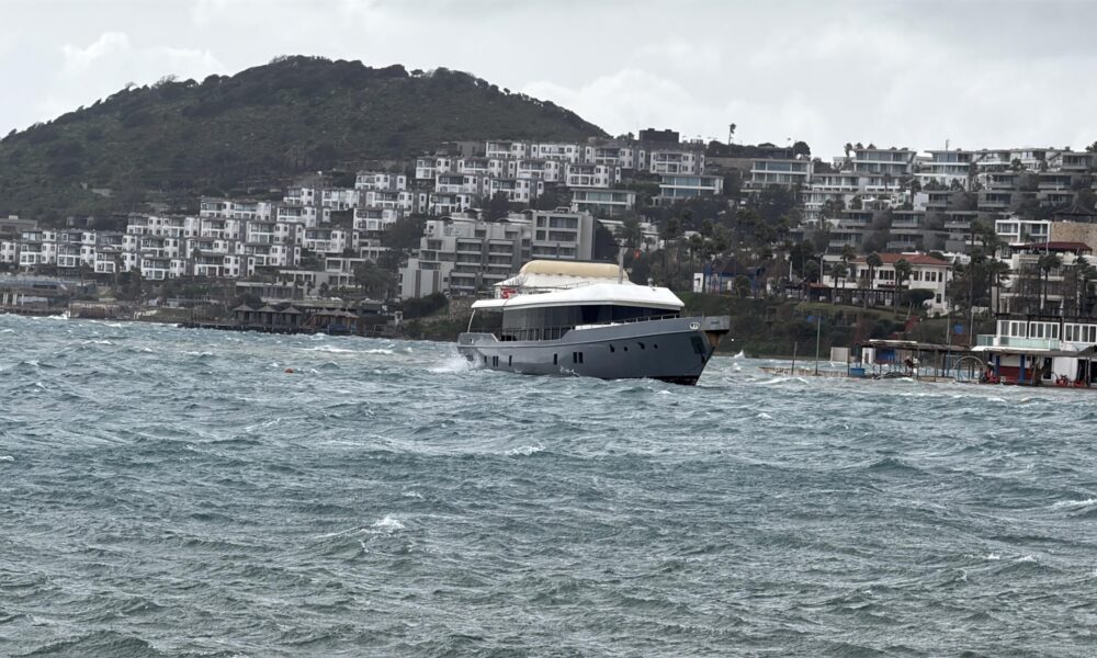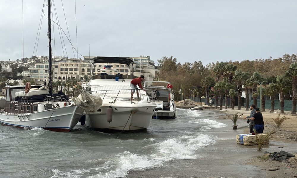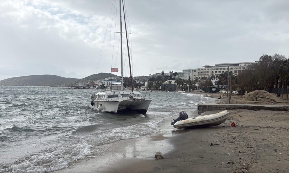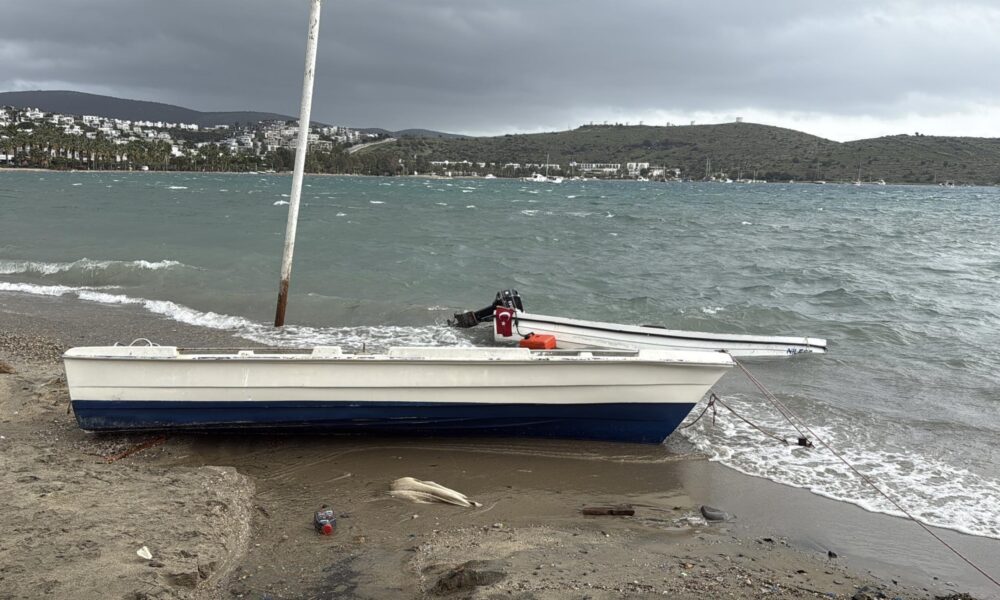 Bodrum’da fırtına; tekneler karaya oturdu, feribot seferi iptal edildi