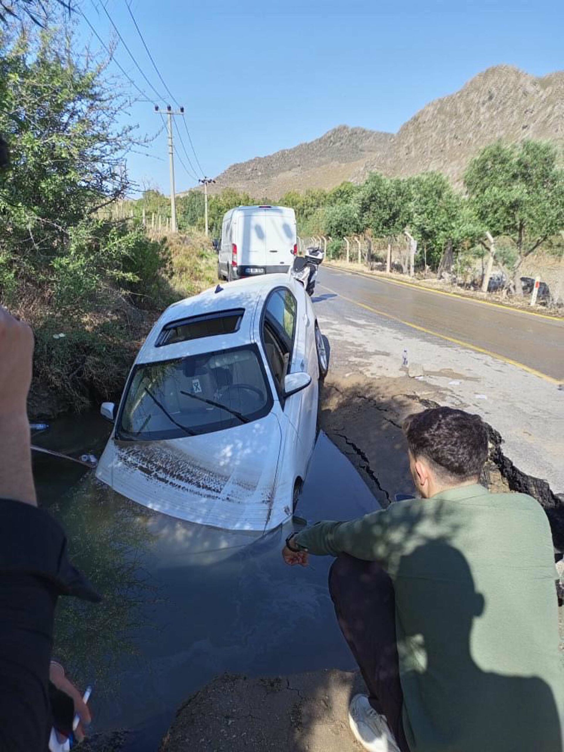 Bodrum’da isale hattı patladı; otomobil oluşan çukura düştü