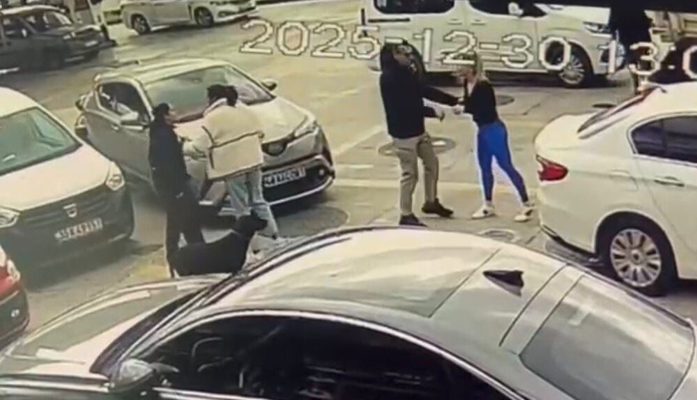 Bodrum’da kaza sonrası taraflar arasında çıkan kavga anı kamerada
