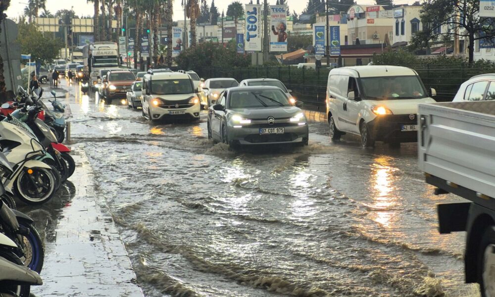 Bodrum’da kuvvetli sağanak yaşamı olumsuz etkiledi, yollar göle döndü