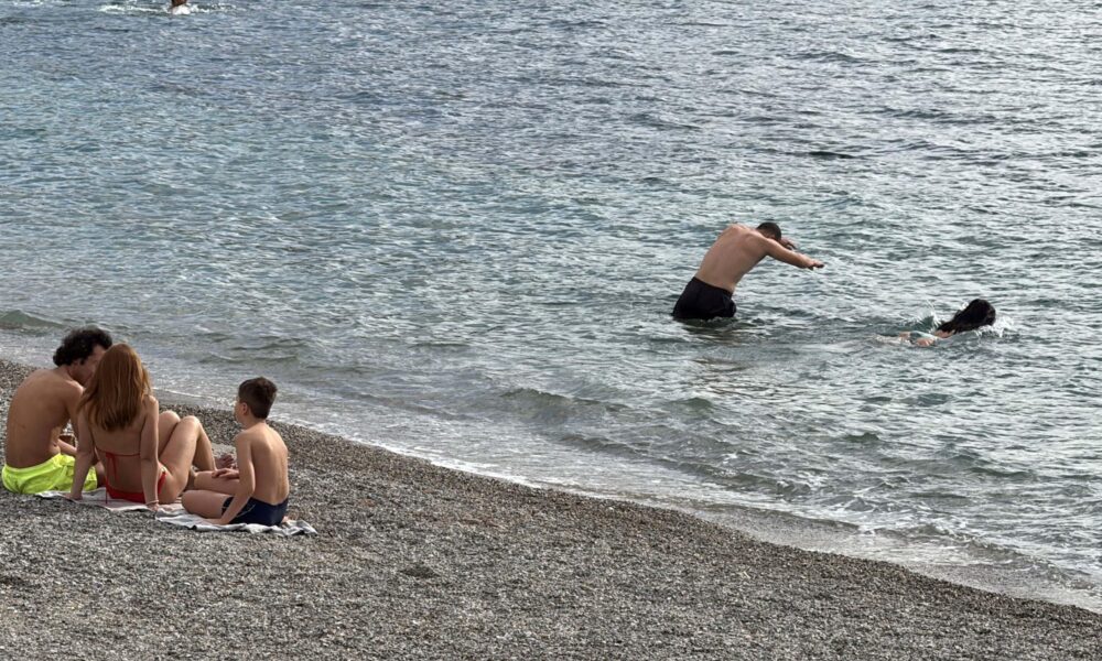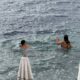 Bodrum’da sağanağa rağmen turistler denize girdi