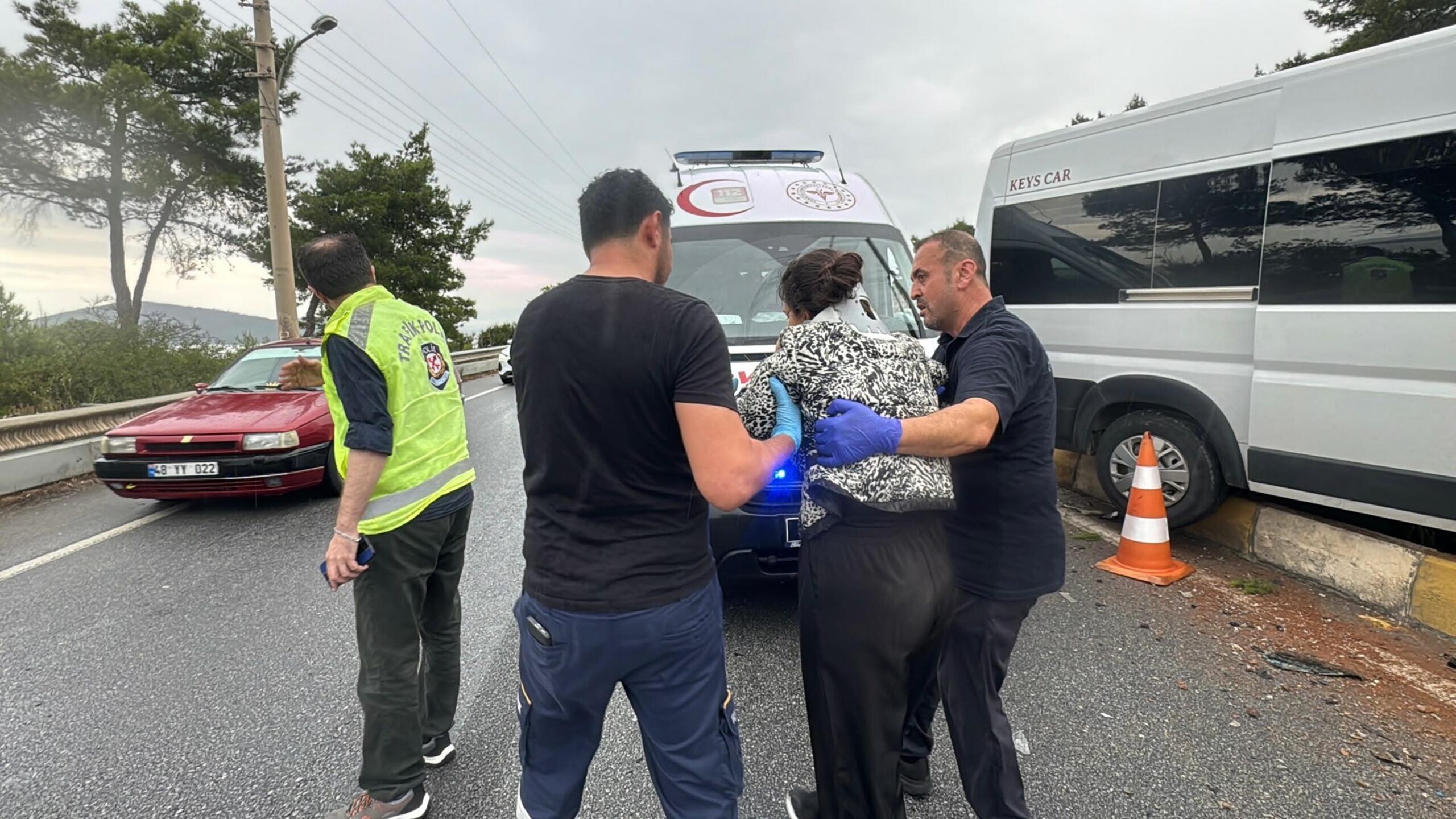 • Muğla’nın Bodrum ilçesinde, aynı istikamette seyir halinde ilerleyen personel servisiyle otomobilin çarpıştığı kazada 16 kişi yaralandı. Fotoğraf: Fırat Akay/Bodrum (Muğla), (DHA)