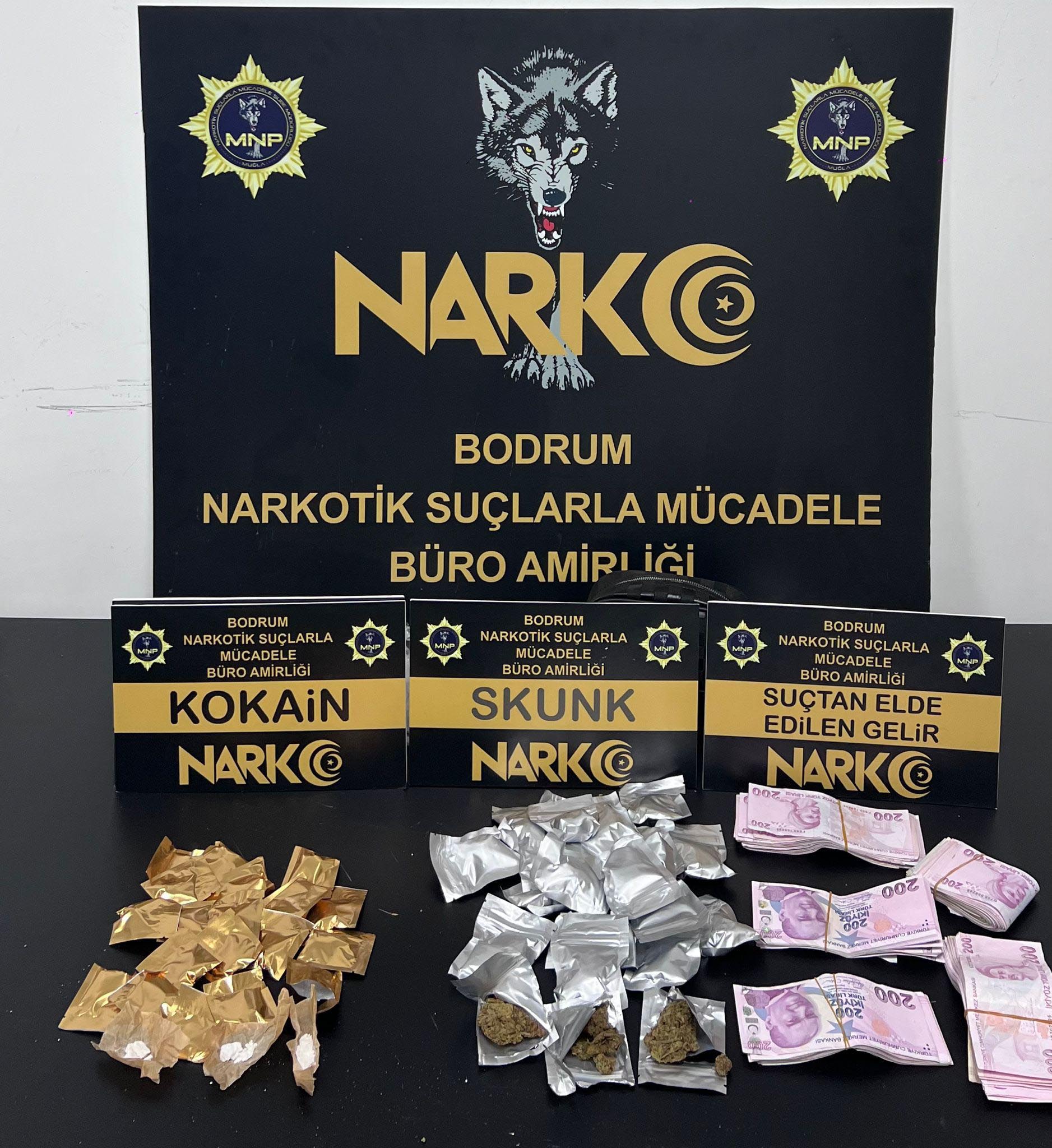 Muğla İl Emniyet Müdürlüğü Narkotik Suçlarla Mücadele Şubesi ekipleri, Bodrumda piyasaya uyuşturucu madde sürüleceği bilgisine ulaştı. Cumhuriyet Başsavcılığı koordinesinde şüphelilerin evlerine bugün sabah saatlerinde düzenlenen operasyonda 2,5 kilo skunk, 685 gram kokain, 3 hassas terazi, uyuşturucu paketlemede kullanılan çok sayıda malzeme, 90 bin lira ve 375 euro ele geçirildi, 5 şüpheli gözaltına alındı.