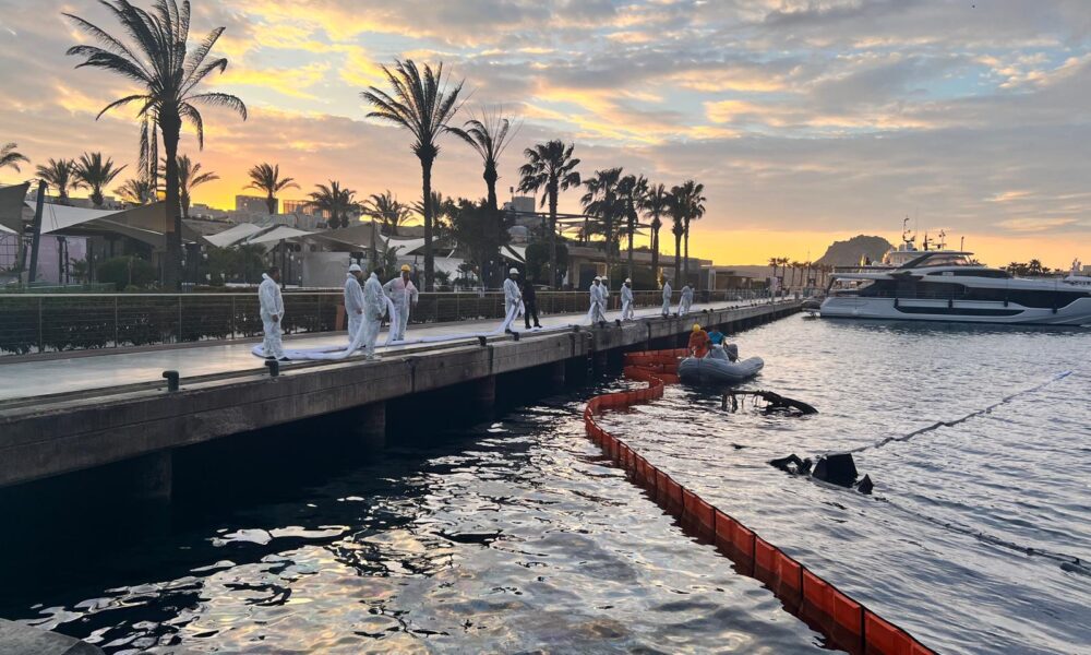 Muğla’nın Bodrum ilçesinde 7 motoryatın battığı ve 1 motoryatın da kısmi hasar almasıyla sonuçlanan yangının ardından, deniz yüzeyindeki kirliliğin temizlenmesi ve motoryat enkazlarının kaldırılması için çalışma başlatıldı. Fotoğraf: Muğla, (DHA)