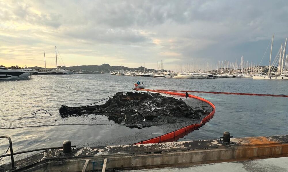 Bodrum’daki yat yangını sonrası temizlik ve enkaz kaldırma çalışması başlatıldı/Ek fotoğraflar