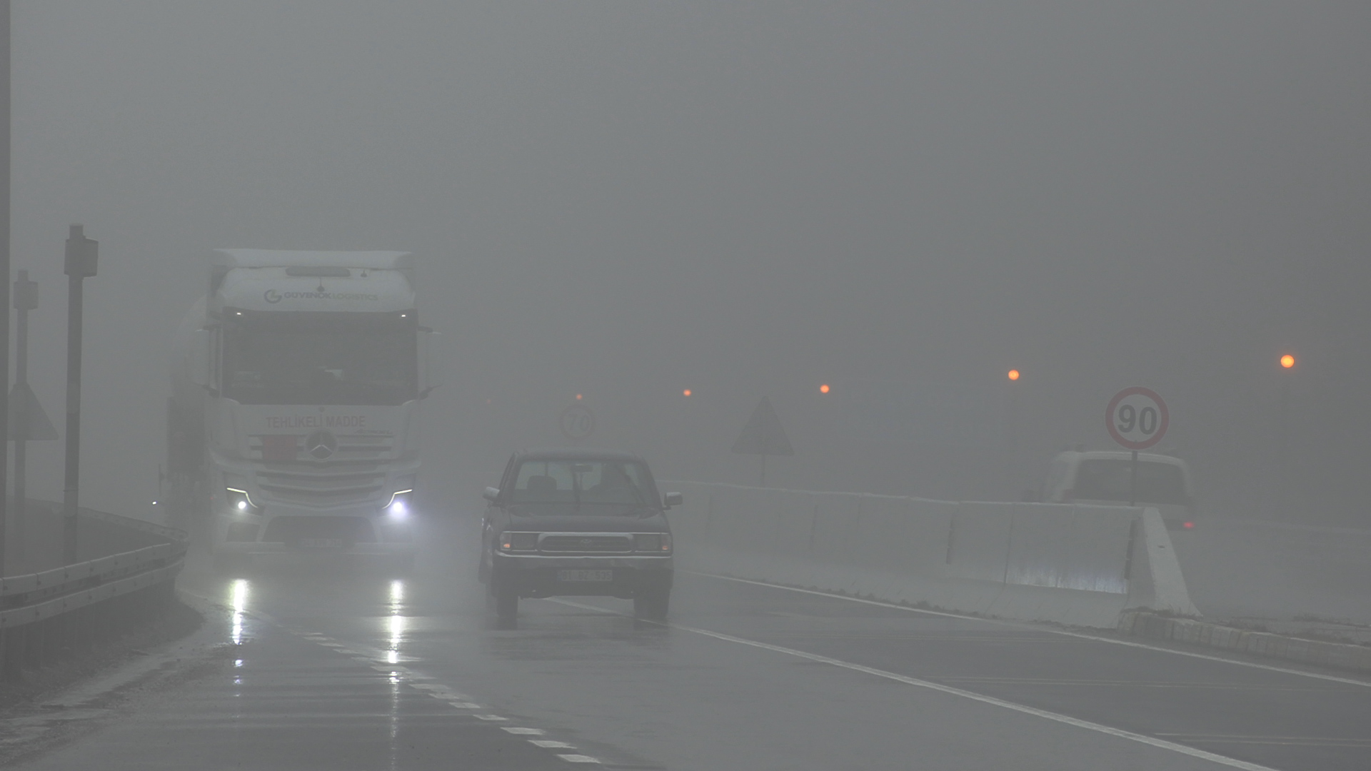 Bolu Dağı’nın D-100 kara yolu geçişinde sabah saatlerinden itibaren aralıklarla yağmur ve sis etkili oldu. Sis nedeniyle yol üzerinde görüş mesafesi yaklaşık 30 metreye kadar düştü. Sürücüler, sis nedeniyle araçları ile yavaş ilerledi. Bolu Dağında hava sıcaklığı sıfır dereceye kadar düşerken, Meteoroloji İl Müdürlüğü verilerine göre bölgede hafta sonu yoğun kar bekleniyor.