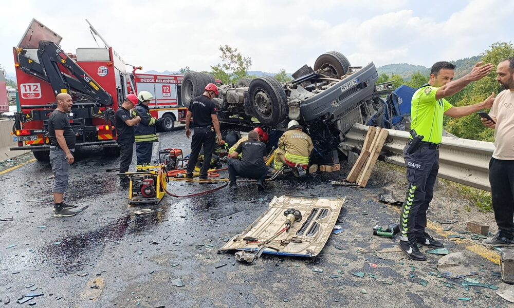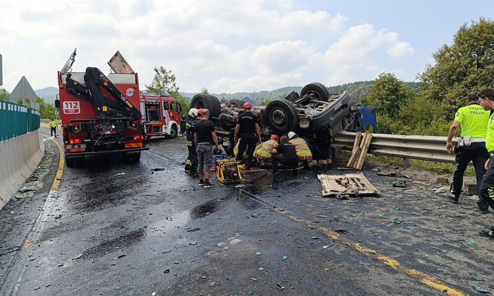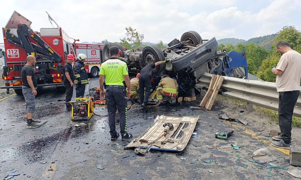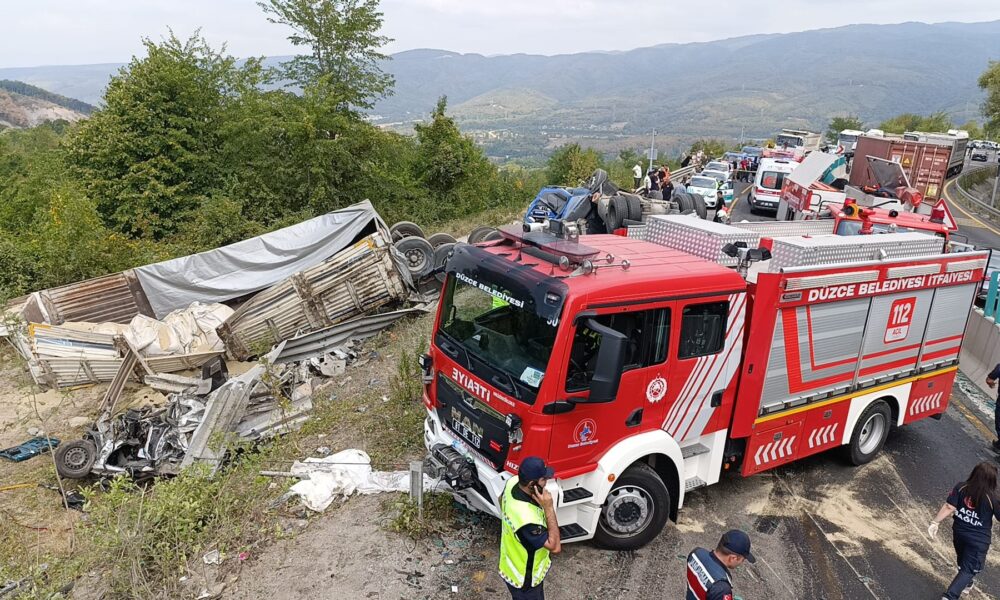 Kaza, saat 11.30 sıralarında D-100 kara yolunun Bolu Dağı geçişi Düzce’nin Kaynaşlı ilçesi mevkisinde meydana geldi. İstanbul yönüne giden sürücüsünün ismi öğrenilemeyen 34 FSY 454 plakalı kum yüklü TIR, kontrolden çıkıp, refüjü de aşarak karşı şeride geçti. TIR, karşı yönden gelen otomobille çarpışıp devrildi. 112 Acil Çağrı Merkezi’ne yapılan ihbar üzerine bölgeye sağlık, polis, itfaiye ve jandarma ekipleri sevk edildi. Yapılan kontrollerde otomobildeki 2 kişinin hayatını kaybettiği belirlendi. TIR’da sıkışan ağır yaralı 2 kişi ise itfaiyenin çalışmasıyla kurtarıldı. Yaralılar, Düzce Üniversitesi Eğitim ve Araştırma Hastanesi’ne kaldırıldı.
