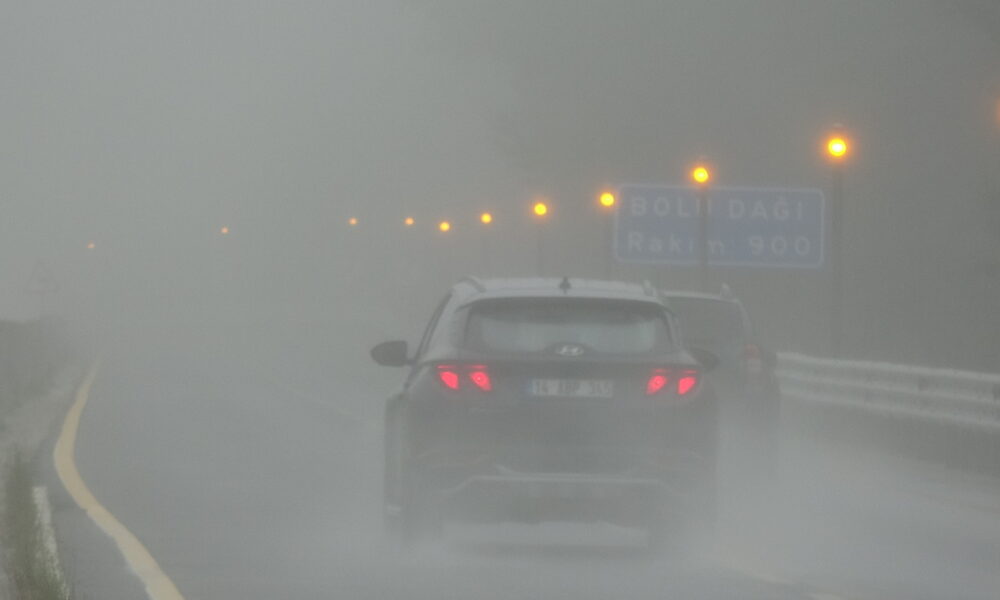 Ankara ile İstanbul arasındaki önemli geçiş güzergahlarından Bolu Dağının D-100 kara yolu geçişinde, sabah saatlerinden itibaren yağmur ve sis etkili oldu. Bolu Dağının Karanlıkdere ve Seymenler mevkilerinde etkili olan sis nedeniyle, görüş mesafesi, yaklaşık 20 metreye kadar düştü. Sis ve yağmur nedeniyle sürücüler, yavaş ilerlemek zorunda kaldı.