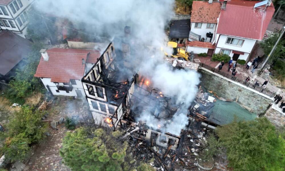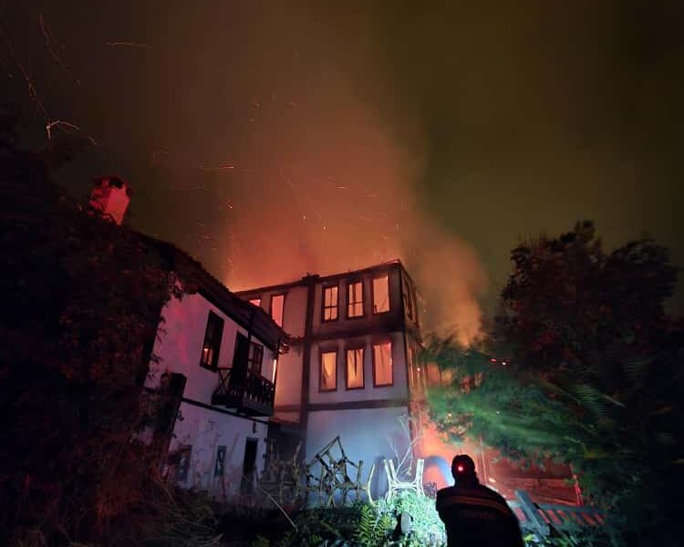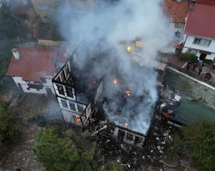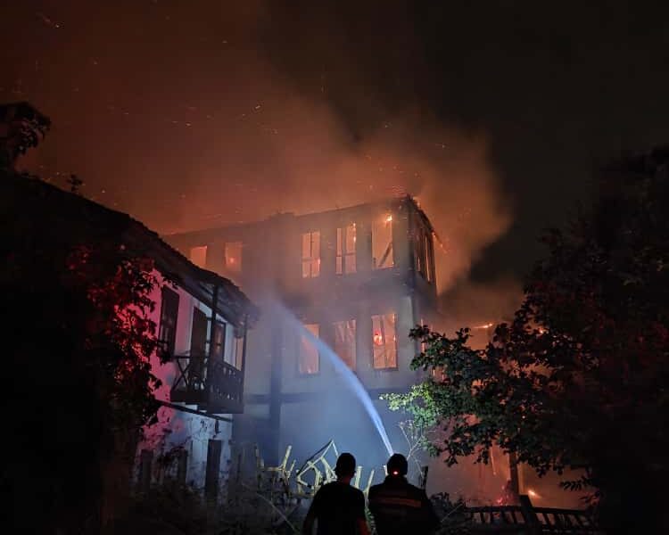 • Bolu'nun Mudurnu ilçesinde bulunan tarihi Keyvanlar Konağı, alev alev yanarak kullanılamaz hale geldi. Fotoğraf: Mudurnu(Bolu),(DHA)