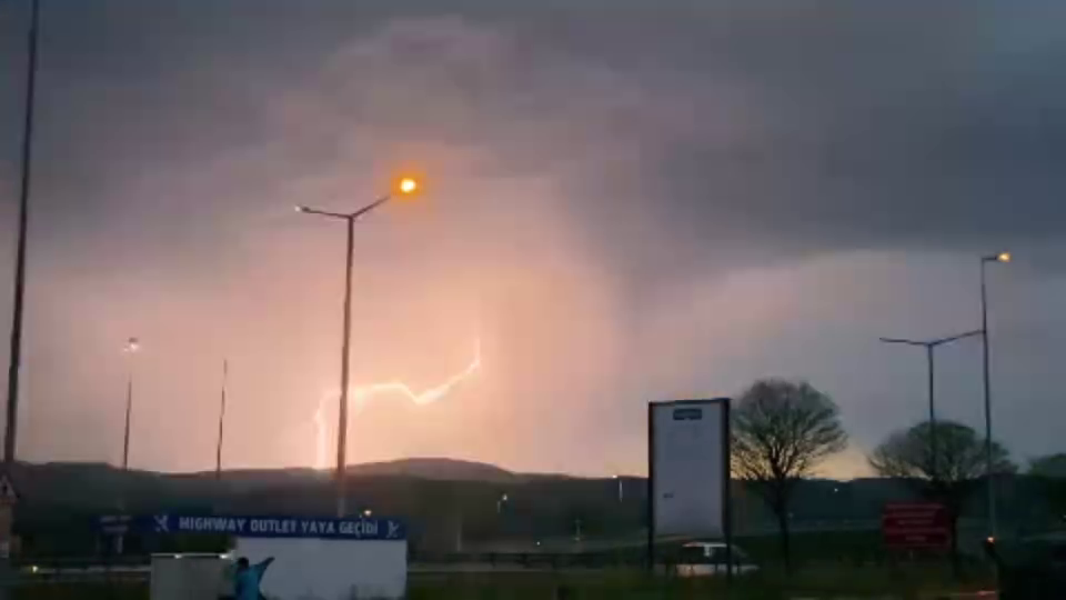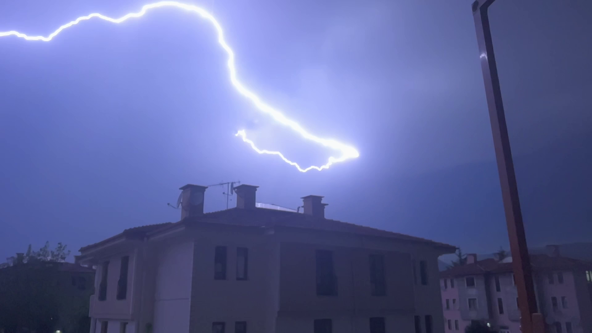 Bolu’da gün boyu güneşli olan hava, akşam saatlerinde yerini sağanak yağışa bıraktı. Gök gürültülü yağmurla birlikte arka arkaya çakan şimşekler, gökyüzünü aydınlattı. Düşen yıldırım da kentte korkuya neden oldu. Yıldırım düşme anları cep telefonu kameralarına yansıdı.