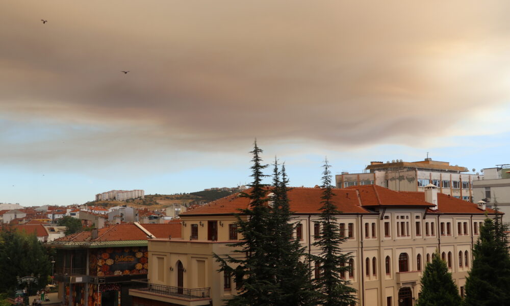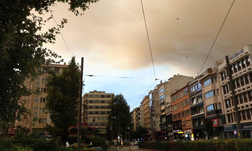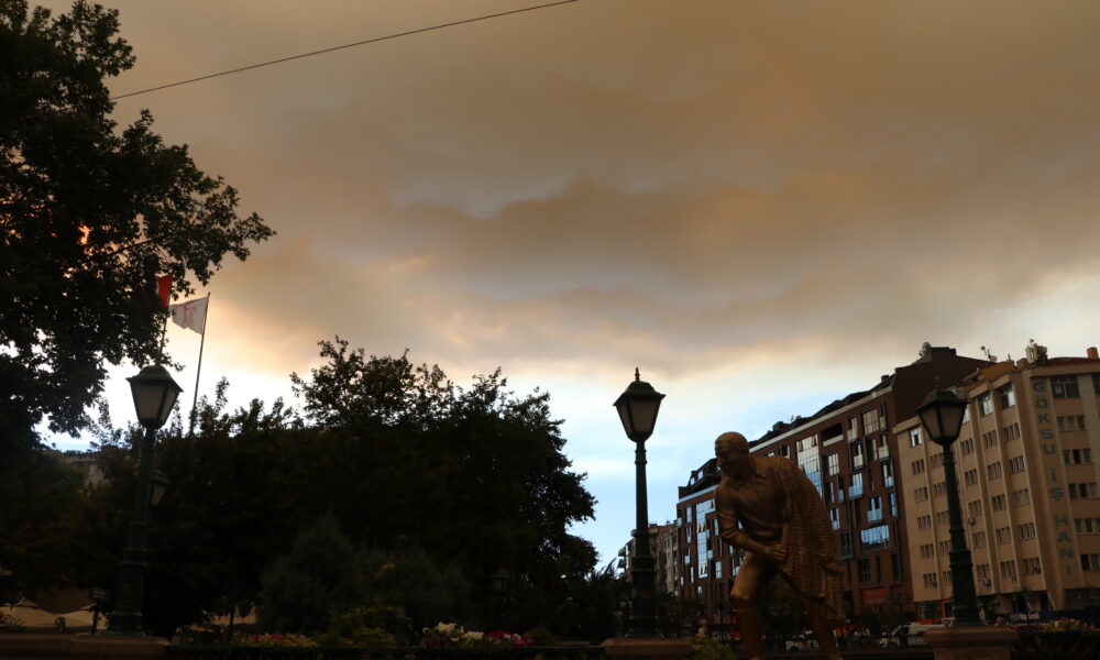 Bolu’daki orman yangınının dumanı Eskişehir’de gökyüzünü kapladı; güneş kızıla döndü