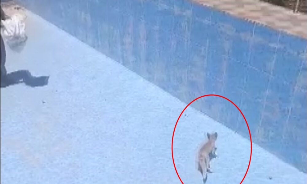 Boş havuza düşen yavru tilkiyi kurtardı; o anlar kamerada
