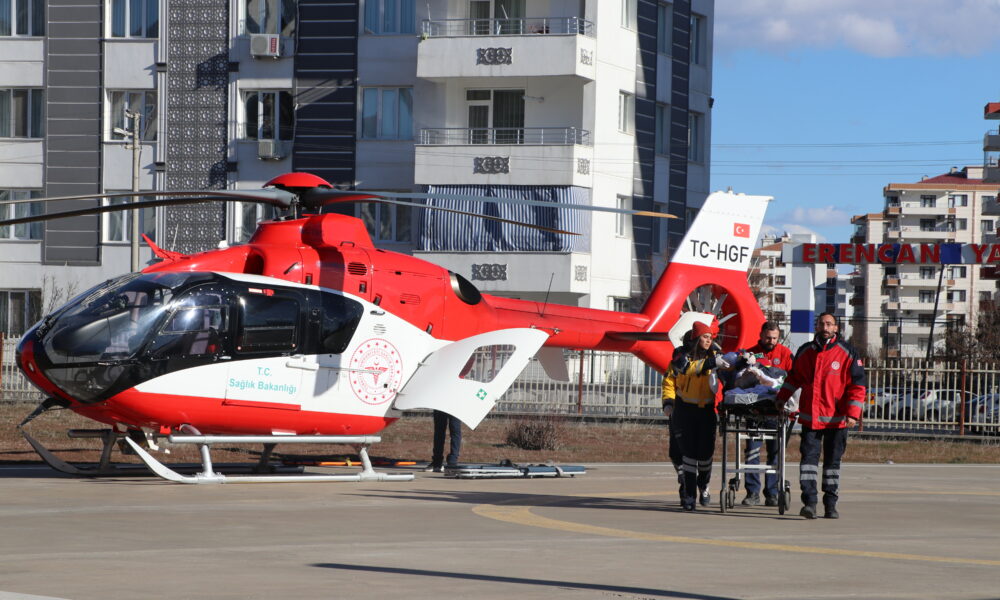 Boynuna ip dolanan Muhammed Asaf, ambulans helikopterle sevk edildi