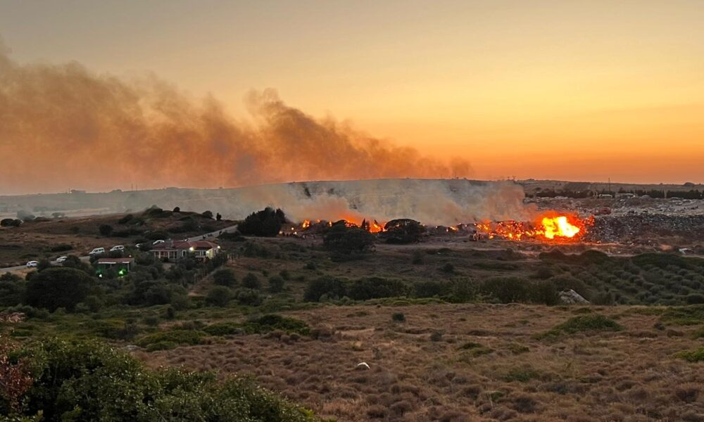 Bozcaada’da çöplük alandaki yangın 2.5 saatte söndürüldü