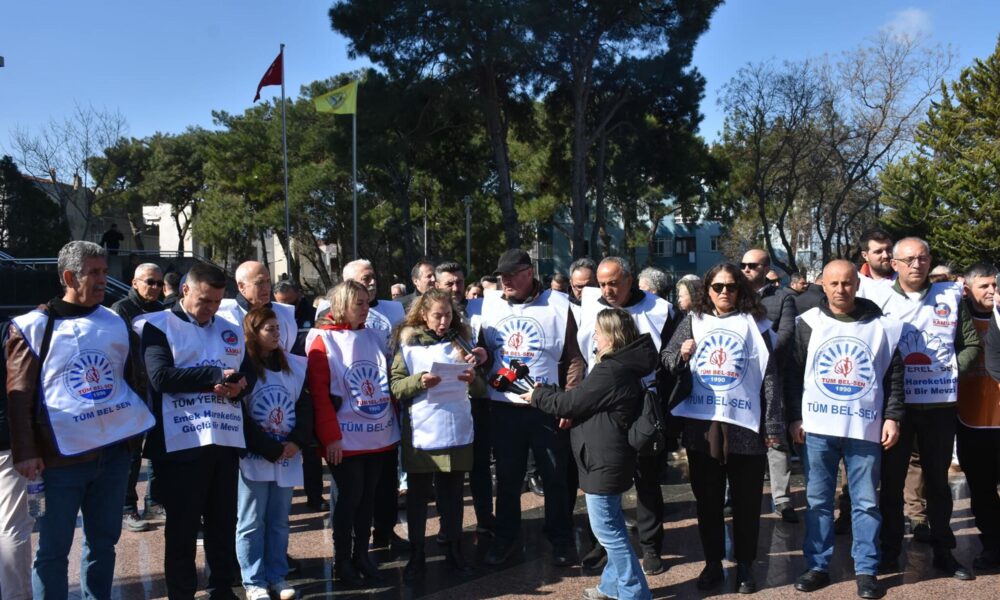 Buca Belediyesinde görev alan Tüm Bel-Sen İzmir 2 Nolu Şubeye bağlı memurlar, geriye dönük TİS haklarını alamadıkları gerekçesiyle iş bırakma eylemi başlattı. Tüm Bel-Sen İzmir 2 Nolu Şube İdari Sekreteri Nurcan Hükenek, belediye önünde bir araya gelen memurlar adına yaptığı açıklamada, “2024 ve 2025 yılına ait eğitim yardımları ödenmemiştir. Arazi tazminatlarımız ödenmemiştir. 2025 yılı performans ücretlerimiz ödenmemiştir. Ve en önemlisi, 7 aydır Toplu İş Sözleşmesi ücretlerimiz ödenmemiştir. 7 aydır süren bu durum artık bir gecikme değildir; açık bir hak ihlalidir. Daha önce takvimler açıklandı, sözler verildi, ödeme tarihleri duyuruldu. Ancak verilen sözlerin hiçbiri tutulmadı. Bu nedenle artık yeni bir takvim talep etmiyoruz. Yeni bir vaat duymak istemiyoruz. Somut ve derhal ödeme istiyoruz” diye konuştu.