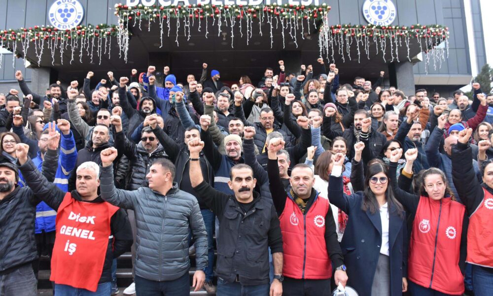 Buca Belediyesinde görev yapan işçiler, kasım ayı maaş ödemelerinin yapılmadığı gerekçesiyle eyleme başladı. Disk Genel-İş İzmir 6 Nolu Şube Yönetim Kurulu üyeleri ve çalışanlar Buca Belediyesi önünde basın açıklaması yaptı.