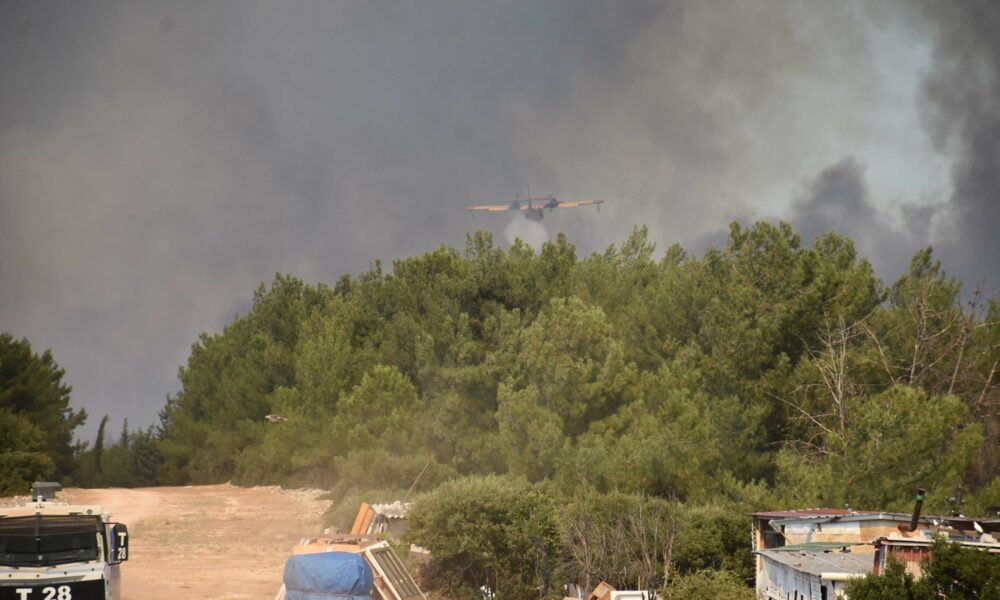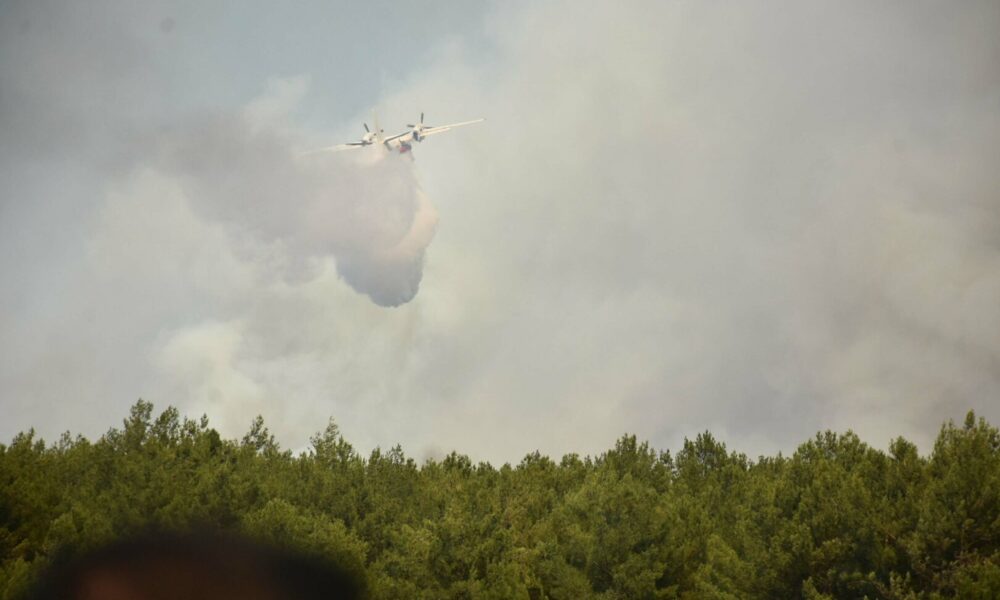 İzmir'in Buca ilçesinde, orman yangını çıktı. Alevlere havadan ve karadan müdahale sürüyor. Fotoğraf: Halil İbrahim KARABIYIK / İzmir, (DHA)