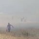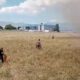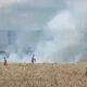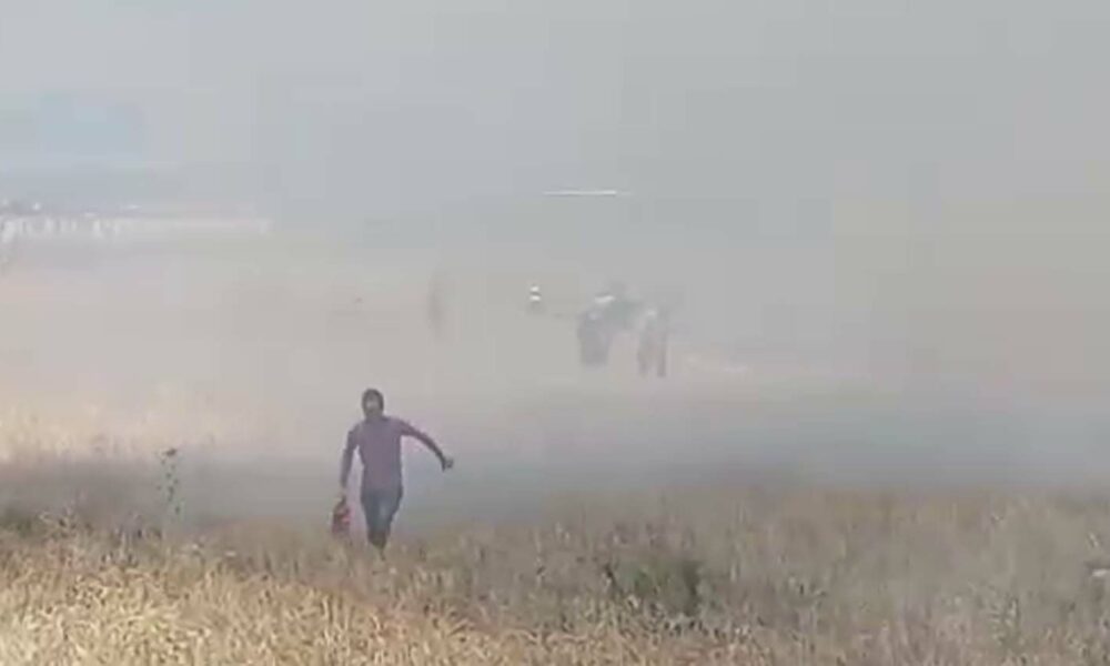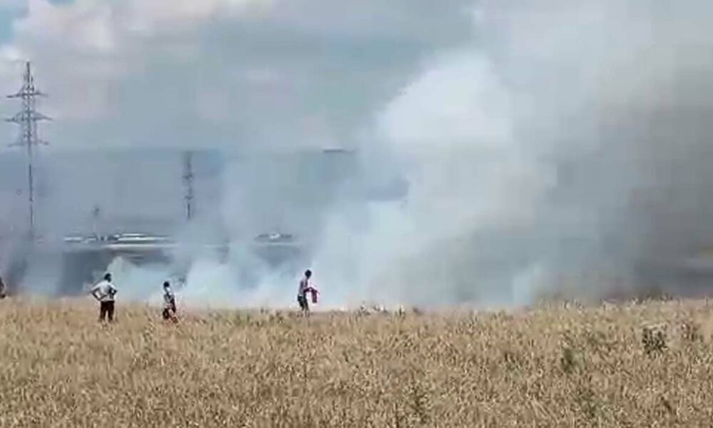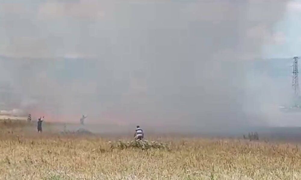 Buğday tarlasındaki alevlere kazma, kürek, yangın tüpleriyle müdahale ettiler