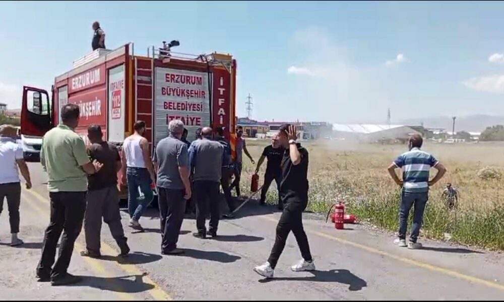 Yangın, saat 16.30 sıralarında Aziziye ilçesi Ilıca semtinde çıktı. İlk belirlemelere göre elektrik tellerindeki kıvılcımlar, buğday ekili tarlada yangına yol açtı. Bazı vatandaşlar araç ve iş yerlerindeki yangın tüpleri, kazma ve küreklerle alevleri söndürmek için çalıştı. Rüzgarın da etkisiyle kısa sürede büyüyen alevler ekili tarlanın büyük bir bölümünü kapladı. Yangın ihbar üzerine gelen Erzurum Büyükşehir Belediyesi itfaiye ekiplerinin çalışması sonucu yangın kontrol altına alınarak söndürüldü. Tarlada zarar oluştu.