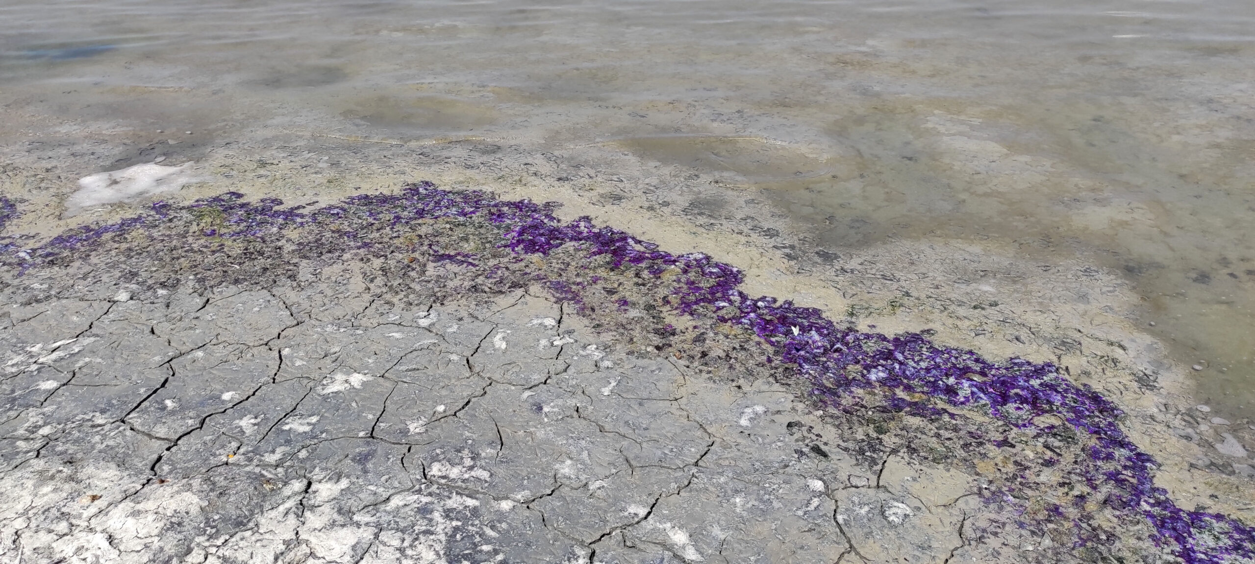 TÜRKİYE’nin 7’nci büyük gölü Burdur Gölü’nde, bu kez sahildeki kumların rengi mora döndü.