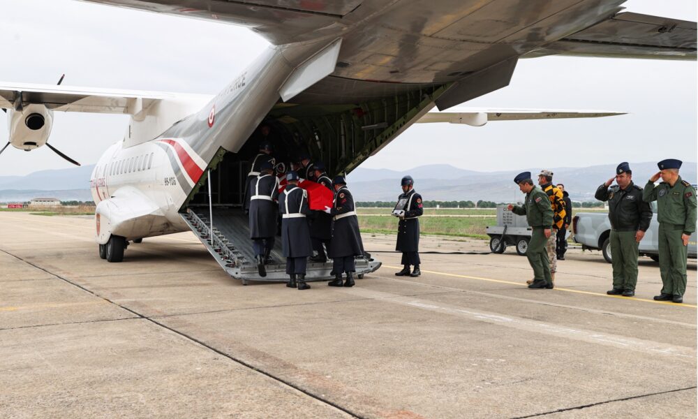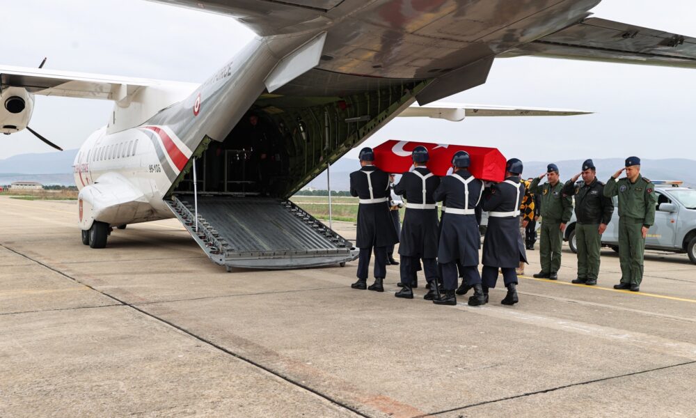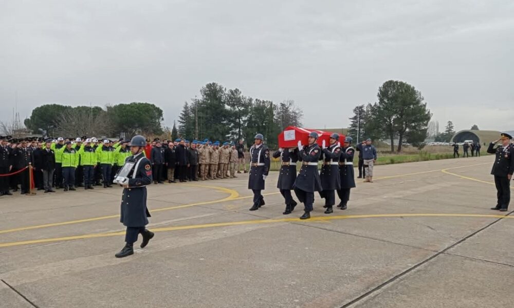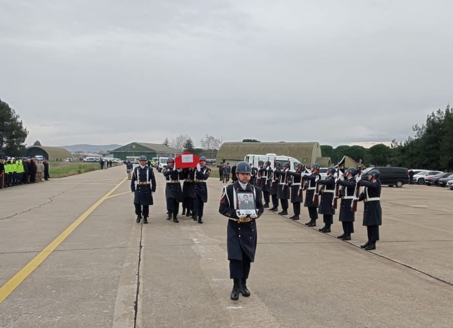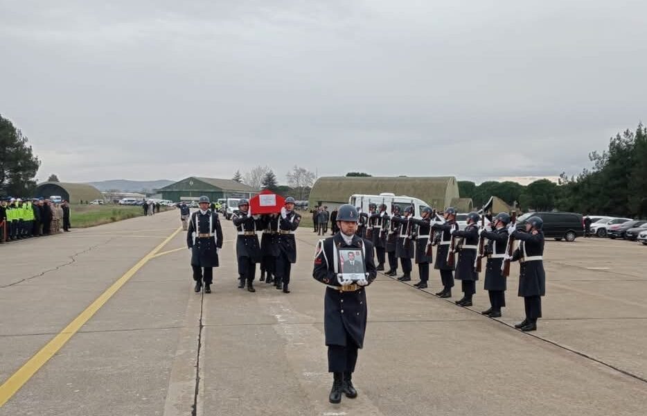 Şehit Uzman Çavuş Nurettin Yaşar (26), Bursa İl Jandarma Komutanlığı'ndaki askeri törenin ardından Yenişehir Havaalanı’ndan, toprağa verilmek üzere memleketi Adana'ya uğurlandı. Fotoğraf: Yenişehir (Bursa), (DHA)