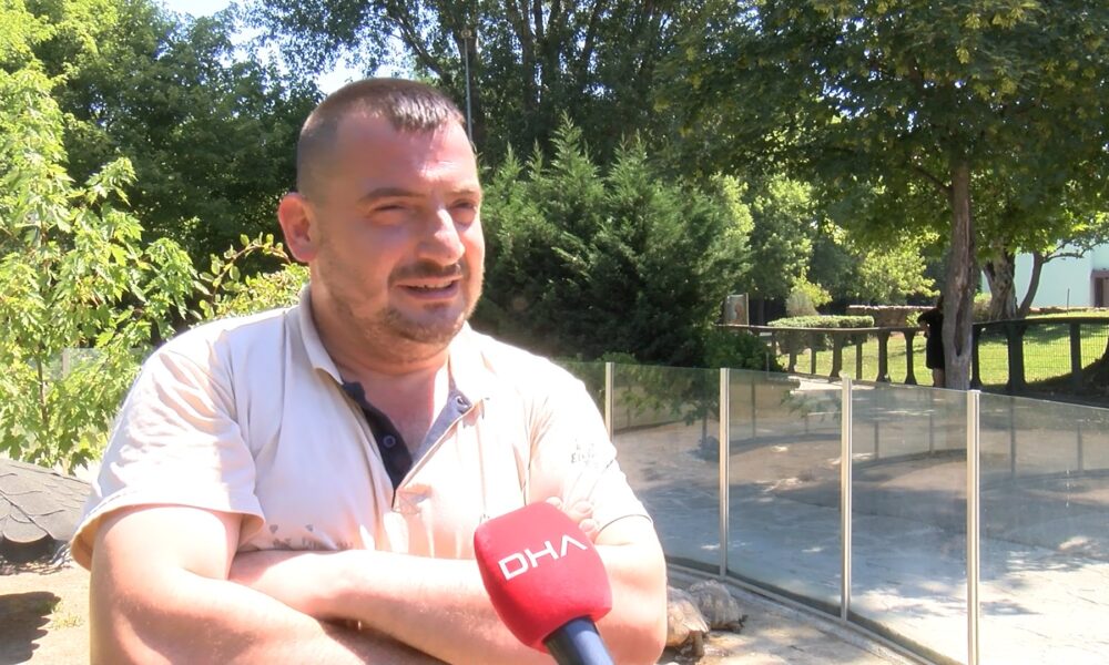Hava sıcaklığının yüksek olması nedeniyle kaplumbağaları daha hafif gıdalarla beslediklerini belirten hayvan bakıcısı Ergün Kuva, “Şu an Afrika Evleri Barınağındayız. Afrika kaplumbağası ve leopar kaplumbağalarının beslemesini yaptık. Malum havalar sıcak. Serin meyveler ve yeşillikler verdik. Hayvanlarımızı serin tutmaya çalışıyoruz. Havuç, marul, elma, kabak, ara sıra kavun, karpuz da veriyoruz. Bunun dışında yonca ve yem veriyoruz. Bu hayvanlar sıcağı seven hayvanlar. Ama bazen serine kaçmak istiyorlar. Ama sıcak iklim hayvanları bunlar” diye konuştu.
