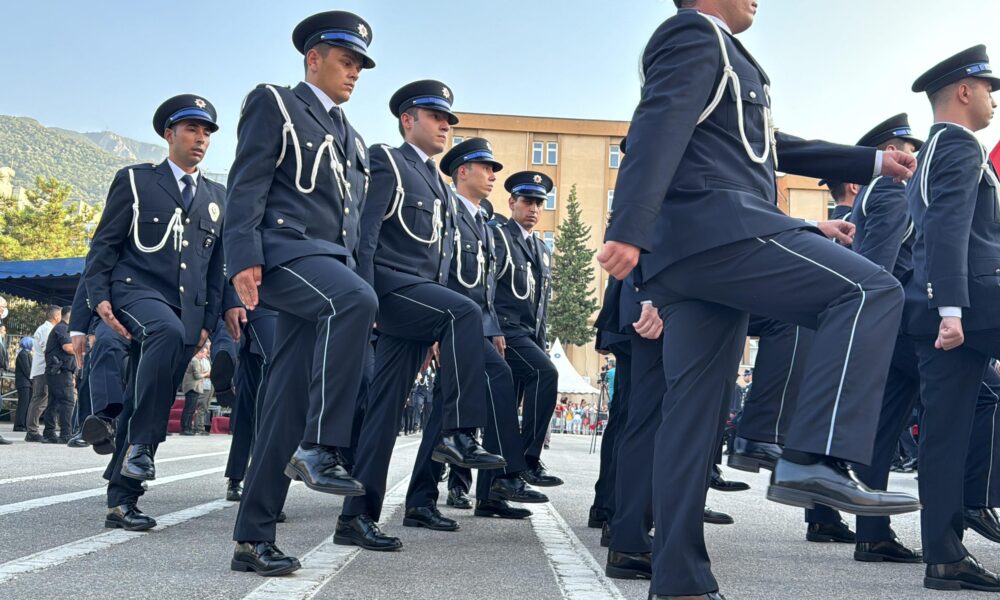 Bursa Polis Meslek Eğitim Merkezinden (POMEM) 30uncu Dönem 206 polis adayının mezuniyet töreni gerçekleştirildi. Törene, Vali Erol Ayyıldız ve kent protokolü katıldı. Bursa POMEM Müdürü Orhan Başaran, 30uncu dönem mezuniyet töreninde yaptığı konuşmada, 10 ay süren teorik ve uygulamalı eğitimin ardından 206 adayın mezun olmaya hak kazandığını söyledi. Törende, dönem birincisi Yusuf Ökten, yaş kütüğüne plaket çaktı. Emniyet müdürlüğünün kuruluşundan bugüne kadar özgürlük ve güvenlik dengesini temel ilke edindiğini söyleyen Başaran, “Emniyet Genel Müdürlüğü, yasaların verdiği yetki ve sorumluluk çerçevesinde hukuk devleti ilkeleri ve insan hakları alanında hizmet üretmektedir. Emniyet Genel Müdürlüğü olarak adalet ve güvenlik ordusuna katkıda bulunan birey ve toplum odaklı polislik anlayışıyla birlikte temel hak ve özgürlüklerin korunması ve toplumun düzen içerisinde yaşamını sürdürmesi için yasalar çerçevesinde güvenlik hizmeti sunmaya devam edeceğiz.” dedi.