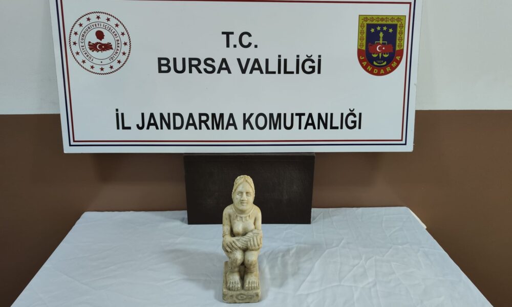 İl Jandarma Komutanlığı İstihbarat Şube Müdürlüğü ve İnegöl Jandarma Komutanlığı Eskikaracakaya Karakolu ekipleri, İstanbuldan Bursanın İnegöl ilçesine satılmak üzere tarihi eser getirildiği bilgisi sonrası harekete geçti. Ekipler, 2 şüphelinin içince bulunduğu aracı, Bursa-Ankara kara yolu Osmaniye Mahallesi girişinde durdurdu. Araçta yapılan aramada Antik Roma Dönemine ait yaklaşık 1700 yıllık olduğu öğrenilen tarihi eser heykel ele geçirildi. Bedirettin Y. (54) ve Selim B. (54) isimli şüpheliler gözaltına alındı.