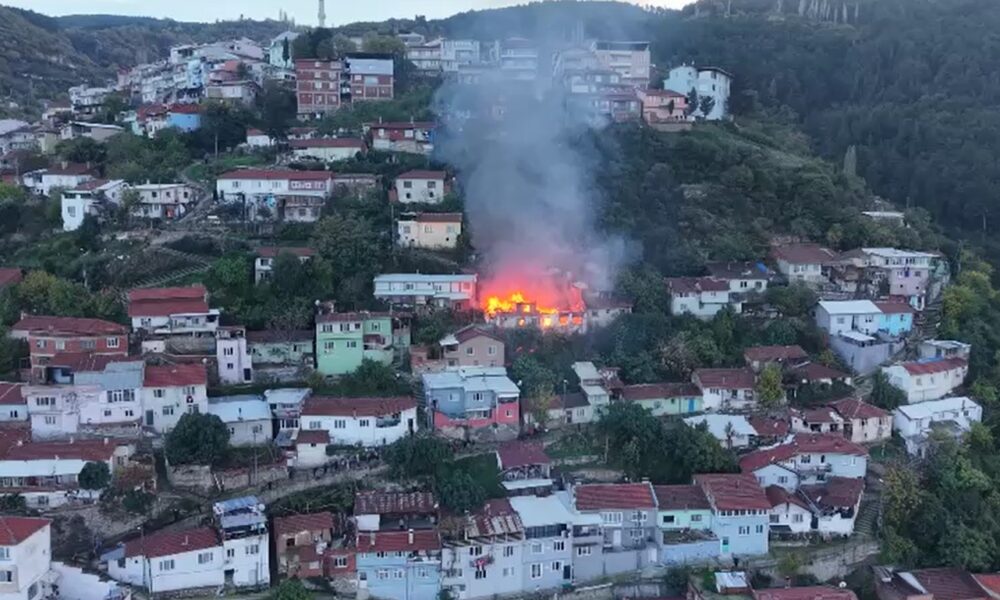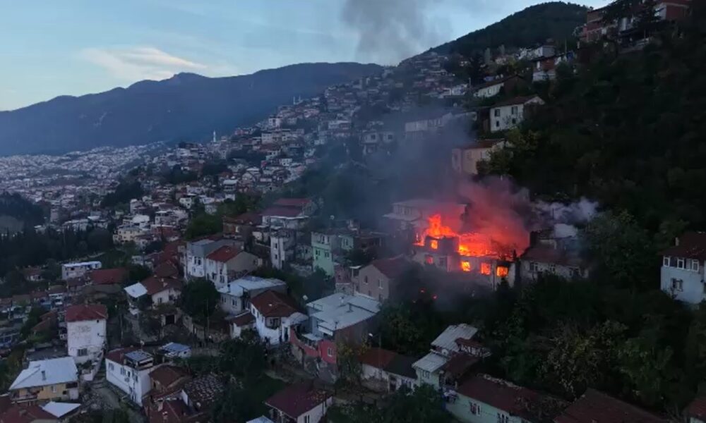 Bursa’da 2 katlı binadaki yangın 3 eve daha sıçradı; alevler dronla görüntülendi