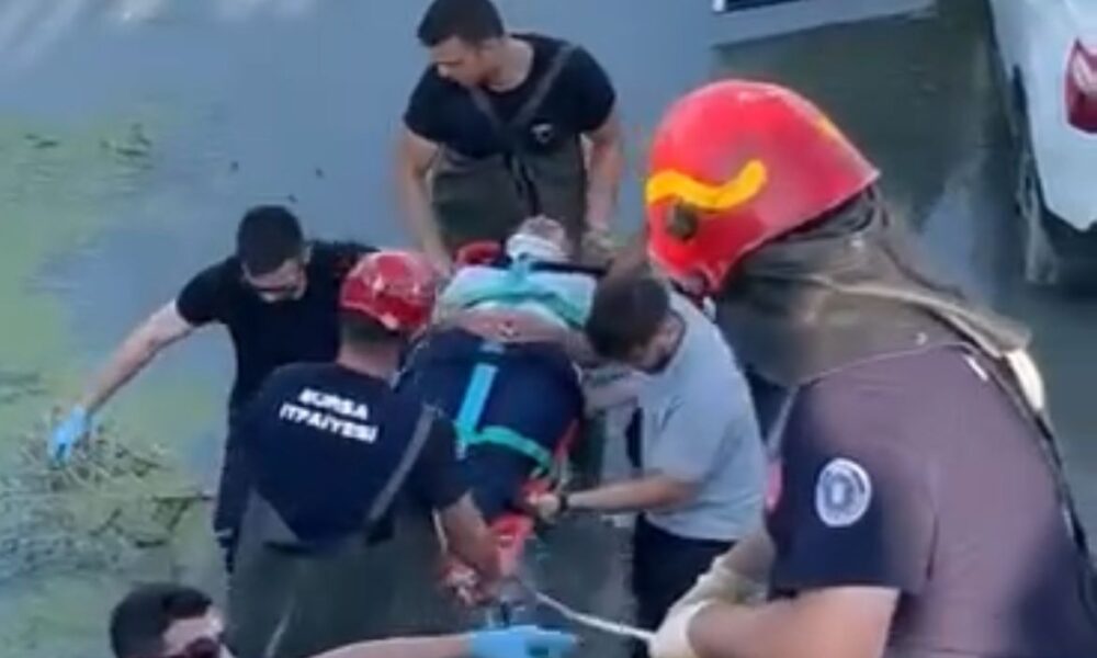 Bursa’da, 6 metre yükseklikten dereye düşen cipin sürücüsü kurtarıldı