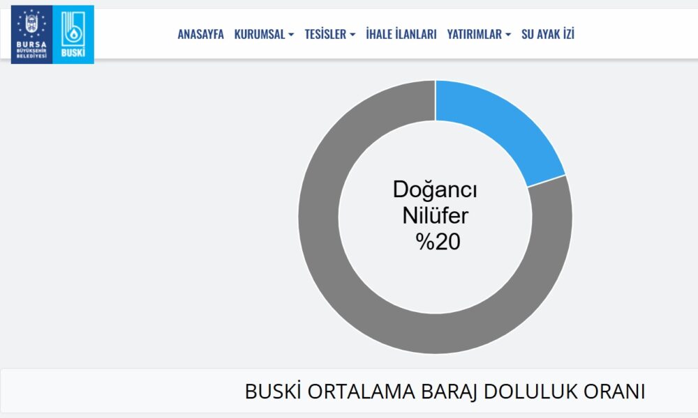 Bursa'nın içme suyu ihtiyacını karşılayan, Nilüfer ve Doğancı barajlarındaki toplam doluluk oranı yüzde 20 olarak ölçüldü. (Fotoğrafta BUSKİ verisi) Fotoğraf: Bursa, (DHA)