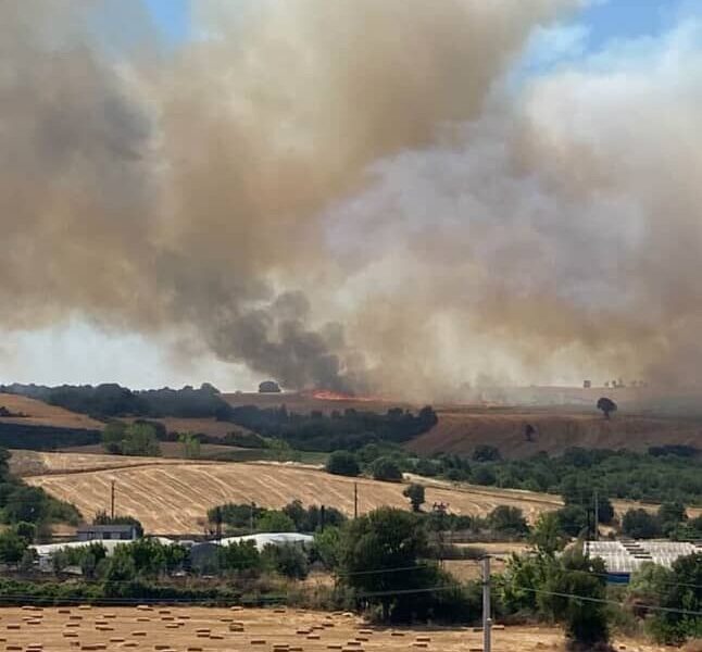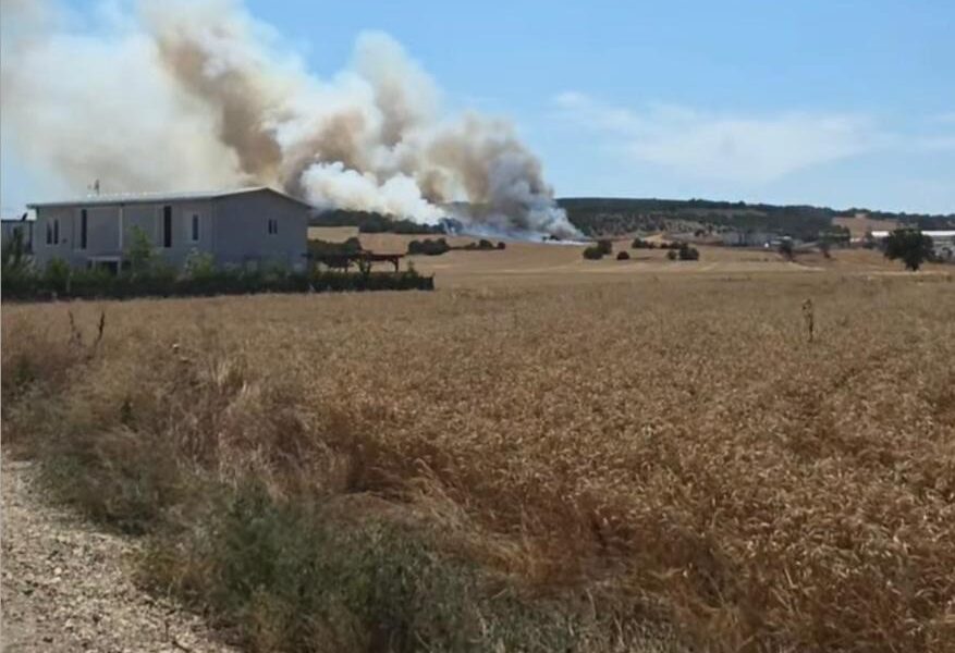 Nilüfer ilçesi Hasanaağa Mahallesi’ndeki buğday tarlasında saat 15.00 sıralarında çıkan yangın, rüzgarın da etkisiyle kısa sürede büyüdü. Alevler çevredeki ağaçlık alana sıçrarken, ihbarla bölgeye itfaiye ekipleri sevk edildi. Bursa Büyükşehir Belediyesi İtfaiye Daire Başkanlığı ekipleri ile çiftçilerin yangını kontrol altına alma çalışmaları devam ediyor.