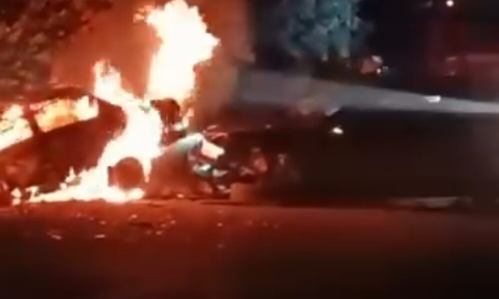 Bursa’da, ciple kafa kafaya çarpışan otomobil alev aldı / Ek fotoğraflar