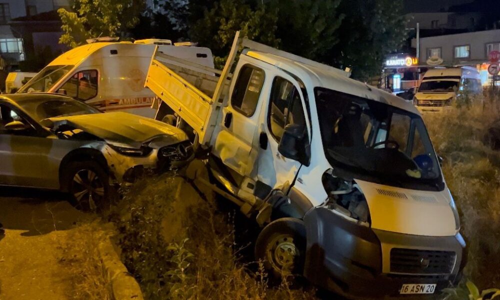 Bursa’da demir korkuluk ve park halindeki kamyonete çarpan otomobildeki 3 kişi yaralandı