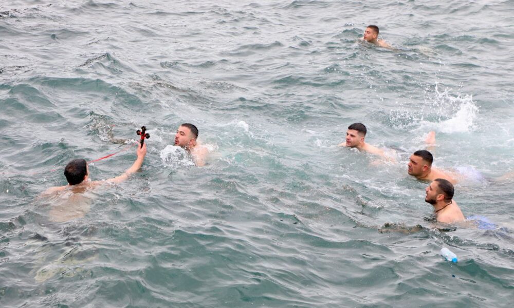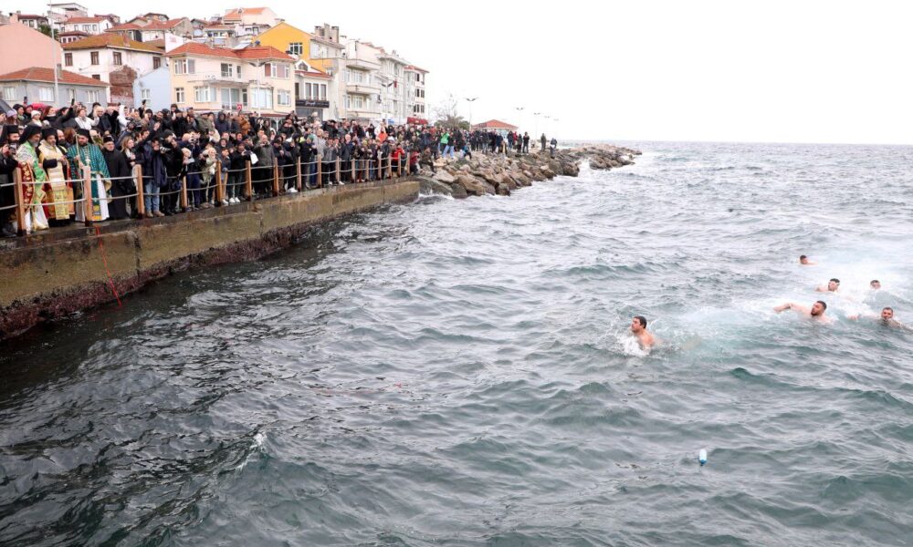 • Bursa'nın Mudanya ilçesinde, Hazreti İsa'nın doğumu ve vaftiz edilişinin 2026’ncı yıl dönümü kapsamında ayin ve denizden haç çıkarma töreni gerçekleştirildi. Fotoğraf: Mudanya (Bursa), (DHA)